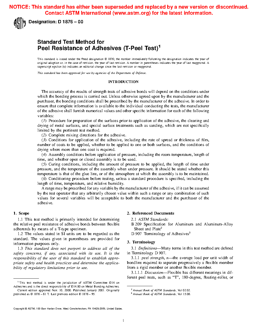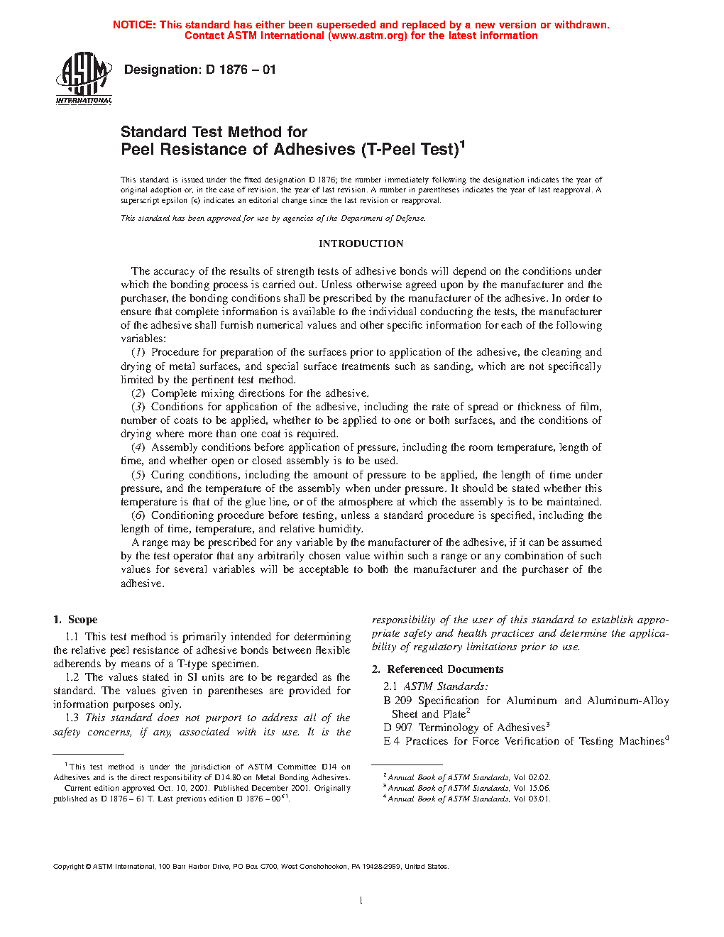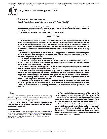 1.1 This test method is primarily intended for determining the relative peel resistance of adhesive bonds between flexible adherends by means of a T-type specimen.