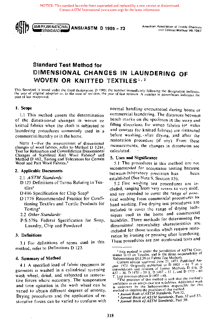 Method of Test for Dimensional Changes in Laundering of Woven or Knitted Textiles (Withdrawn 1977)