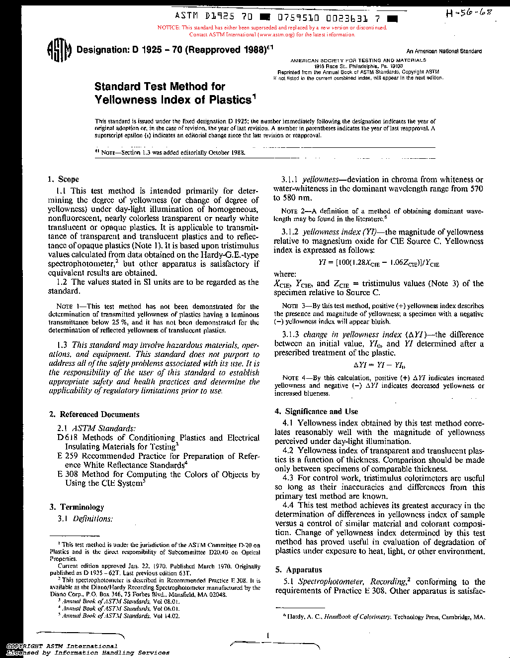 ASTM D1925-70(1988)e1