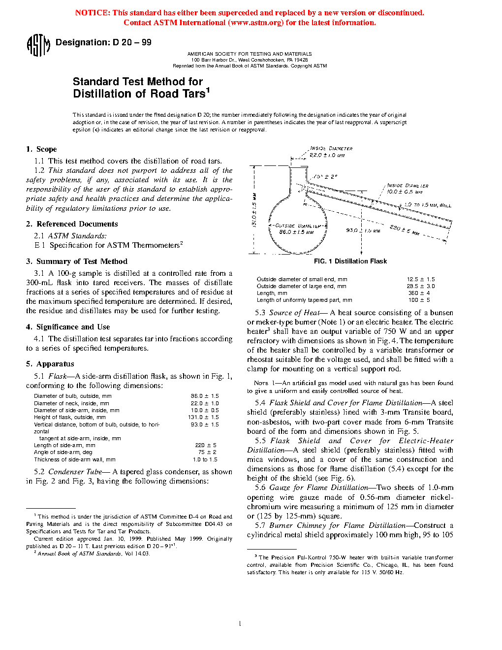 Standard Test Method for Distillation of Road Tars