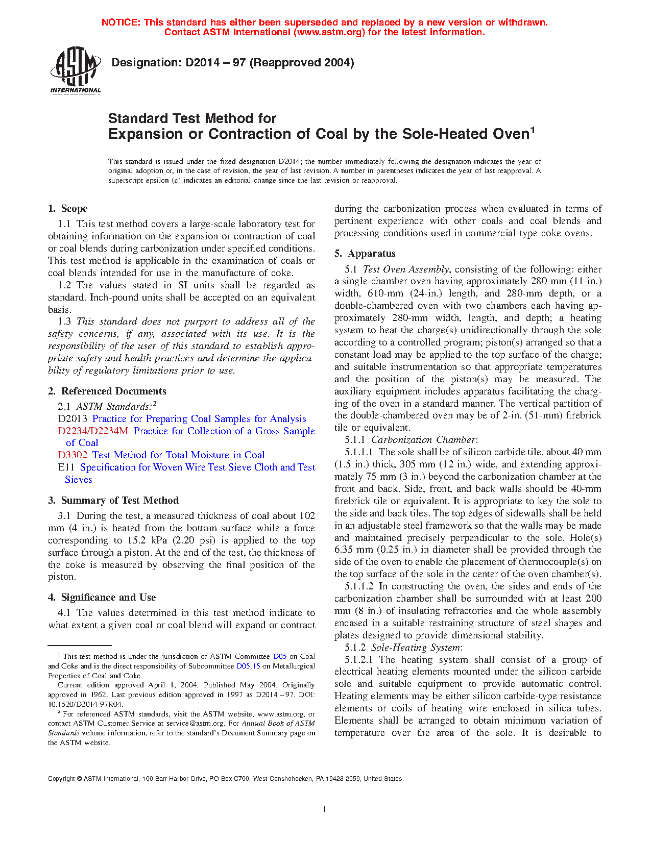 1.1 This test method covers a large-scale laboratory test for obtaining information on the expansion or contraction of coal or coal blends during carbonization under specified conditions. This test method is applicable in the examination of coals or coal blends intended for use in the manufacture of coke.