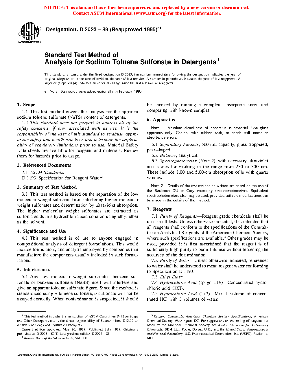 ASTM D2023-89(1995)e1