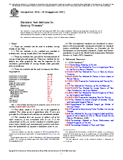 1.2 These test methods only provide for the measurement of sewing thread physical properties. These test methods do not address any other properties that may be important for the satisfactory performance of sewing threads under particular end use conditions.