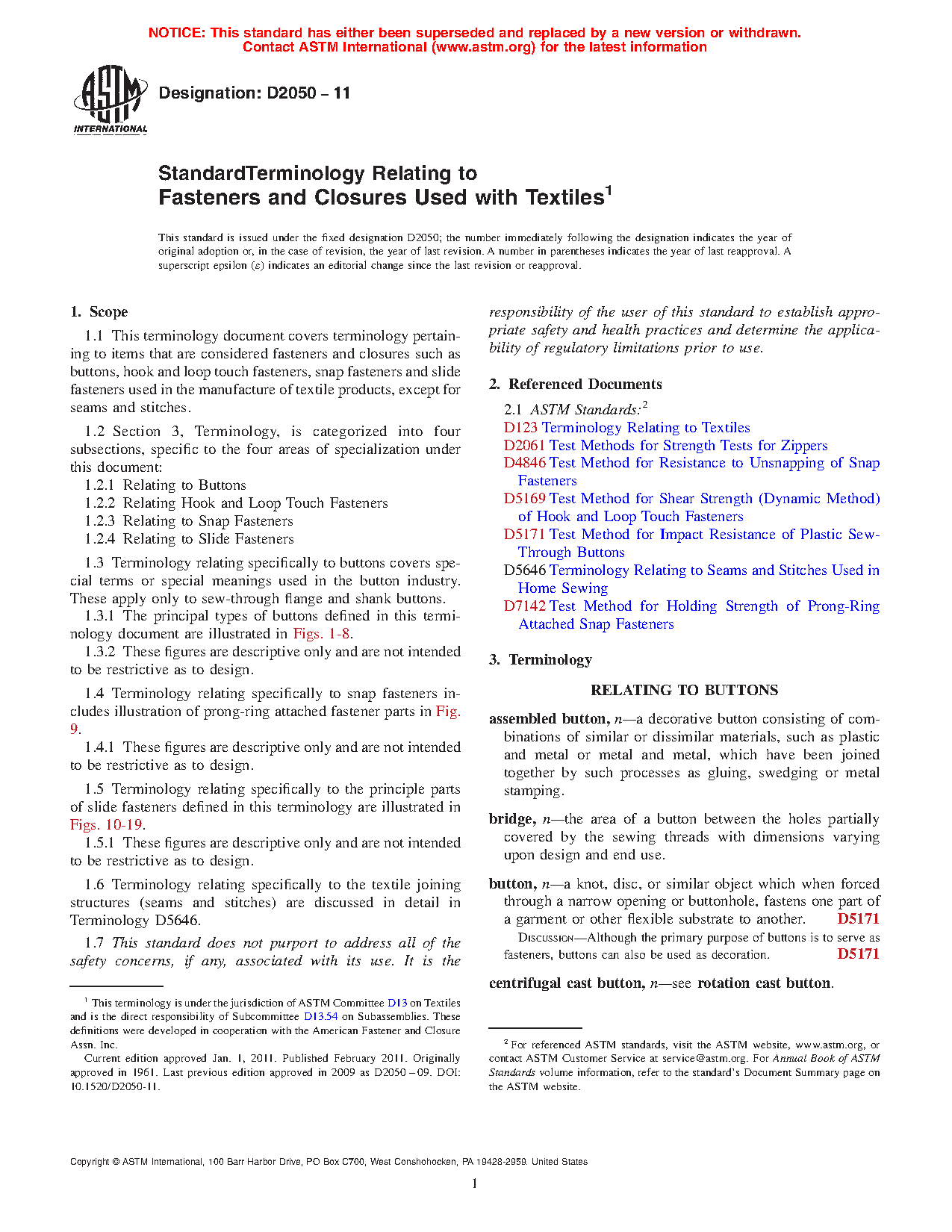 1.1 This terminology document covers terminology pertaining to items that are considered fasteners and closures such as buttons, hook and loop touch fasteners, snap fasteners and slide fasteners used in the manufacture of textile products, except for seams and stitches.