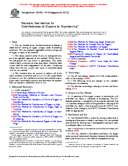 1.1 This test method covers the determination of change in shade and of staining of zipper stringers under drycleaning conditions. This test method is applicable to the textile portion of zipper stringers of all materials.