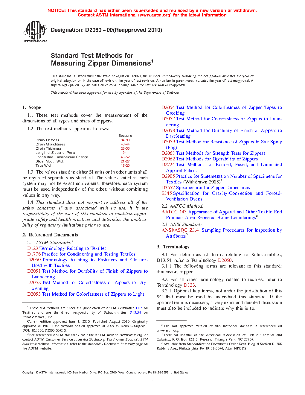 1.1 These test methods cover the measurement of the dimensions of all types and sizes of zippers.