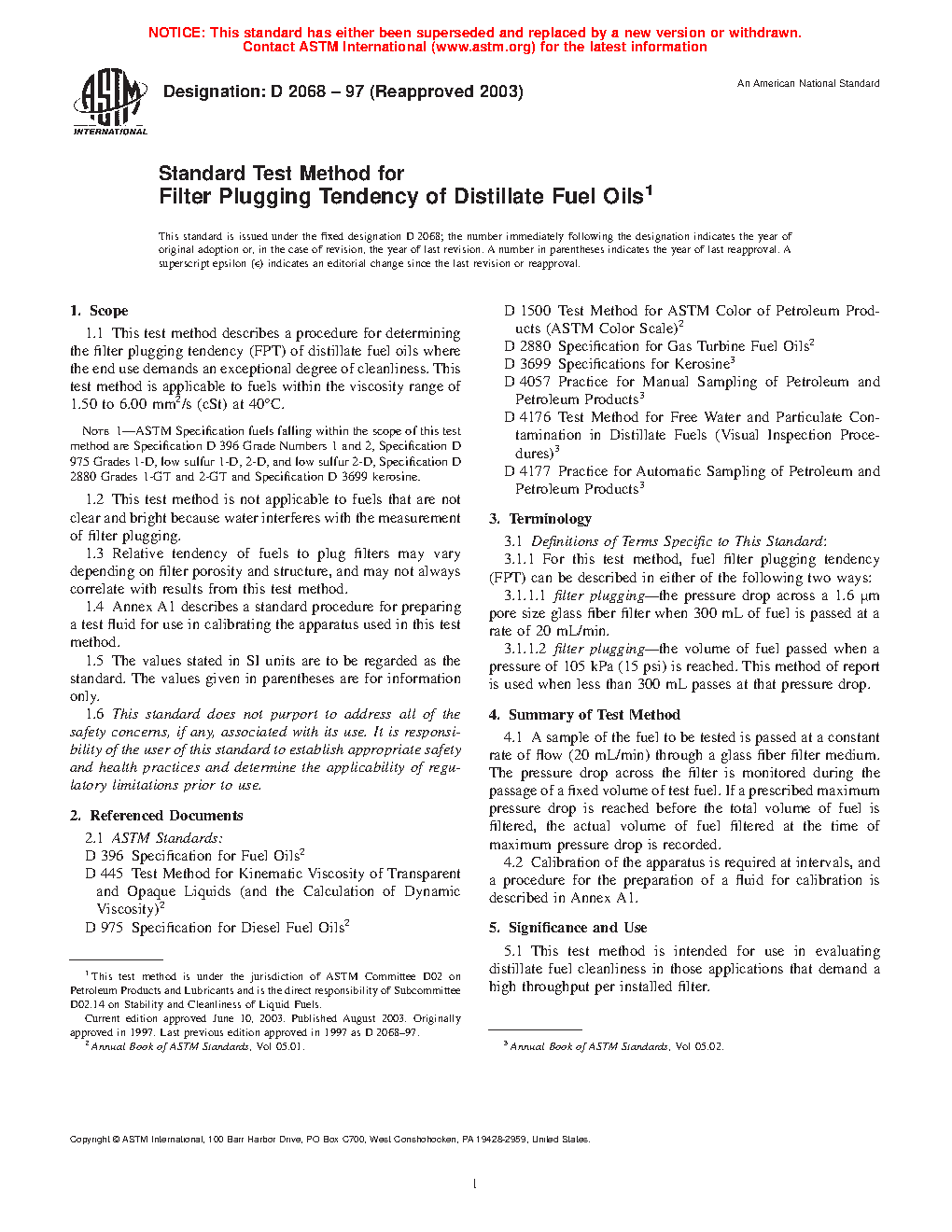 Note 1: ASTM specification fuels falling within the scope of this test method are: Specifications D396 Grades No 1 and 2; Specification D975 Grades 1-D, low sulfur 1-D and 2-D; Specification D2880 Grades 1-GT and 2-GT; Specification D6751.