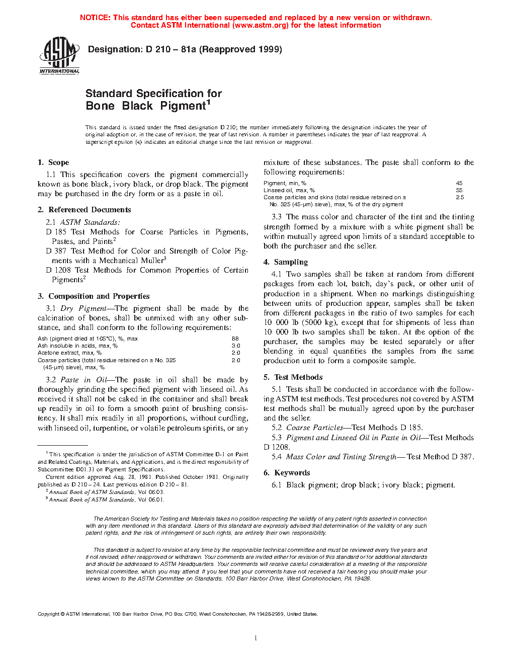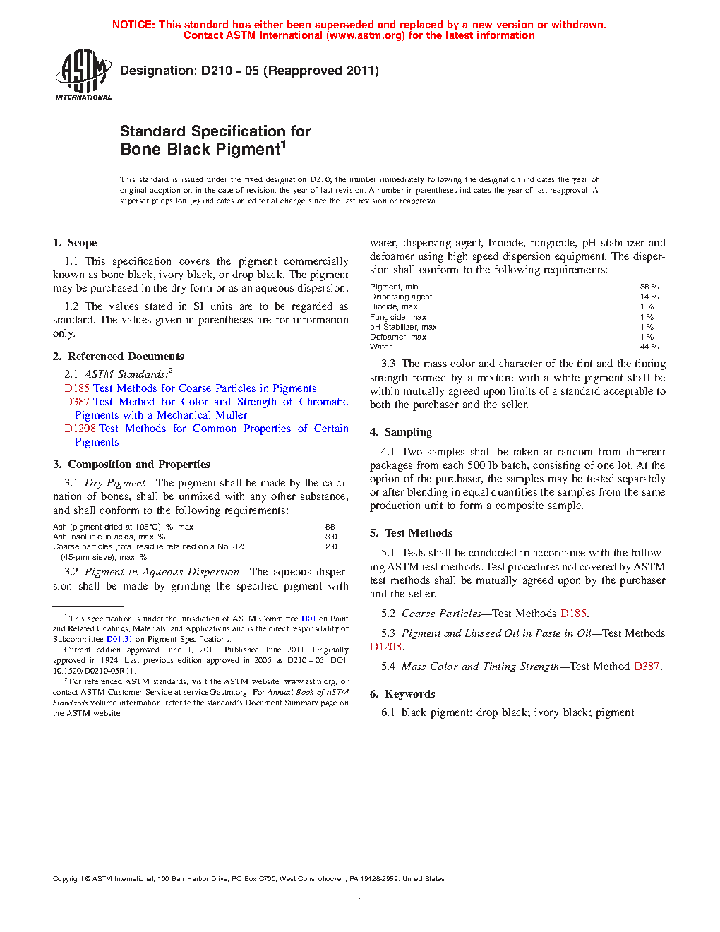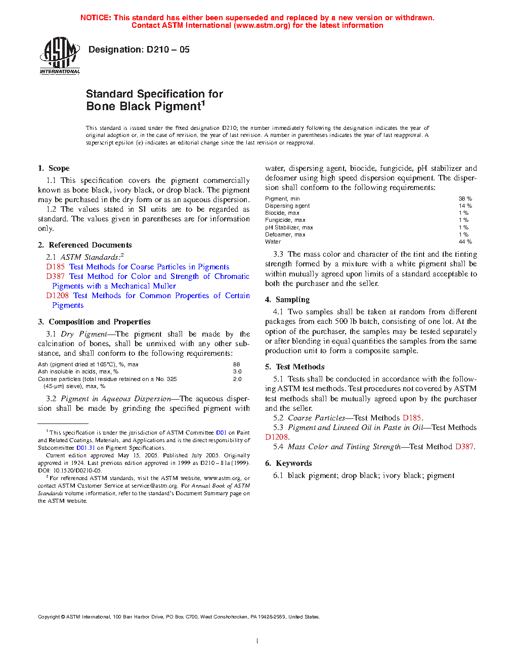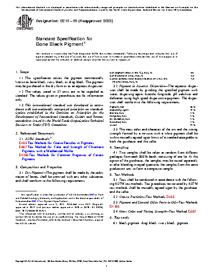 1.1 This specification covers the pigment commercially known as bone black, ivory black, or drop black. The pigment may be purchased in the dry form or as an aqueous dispersion.