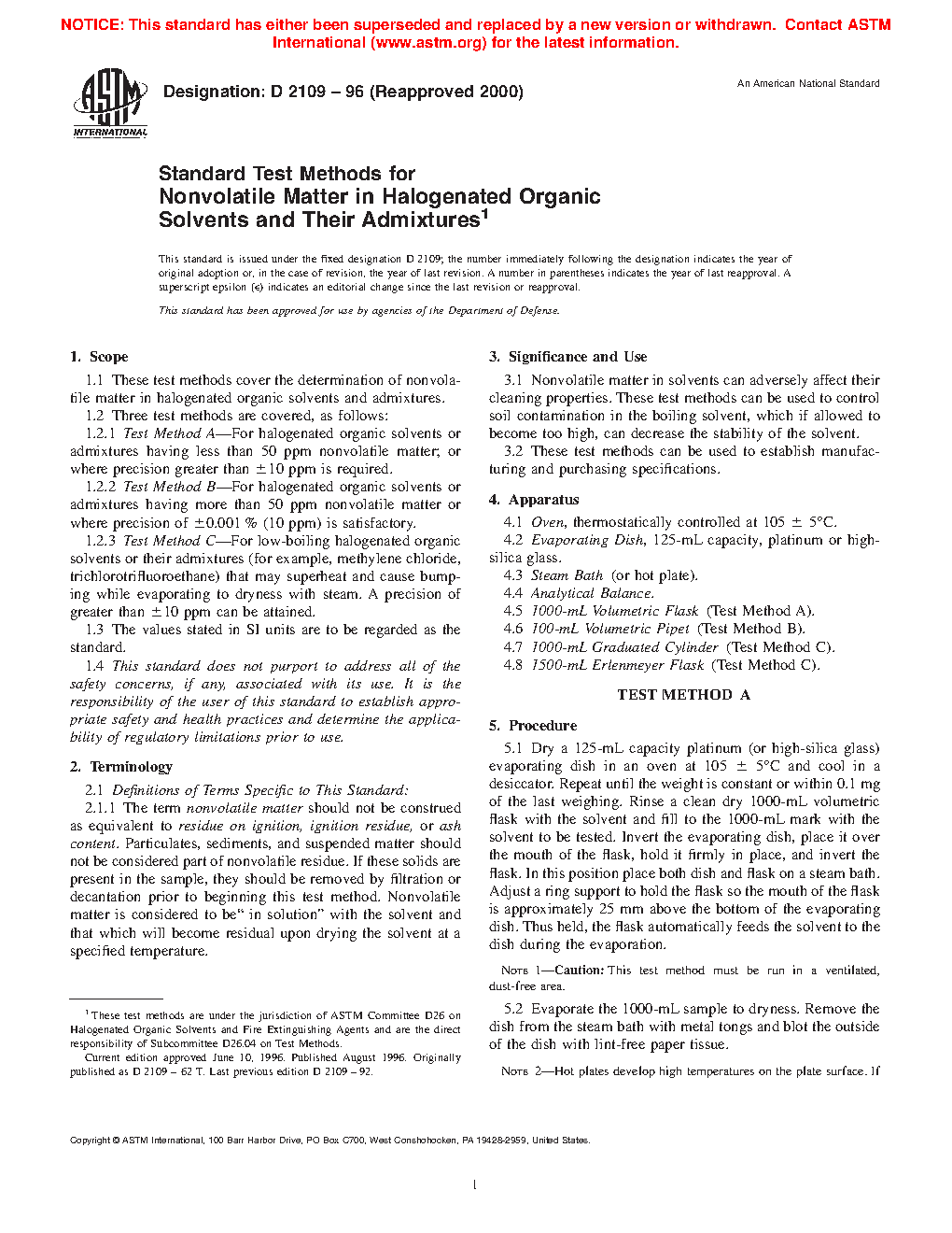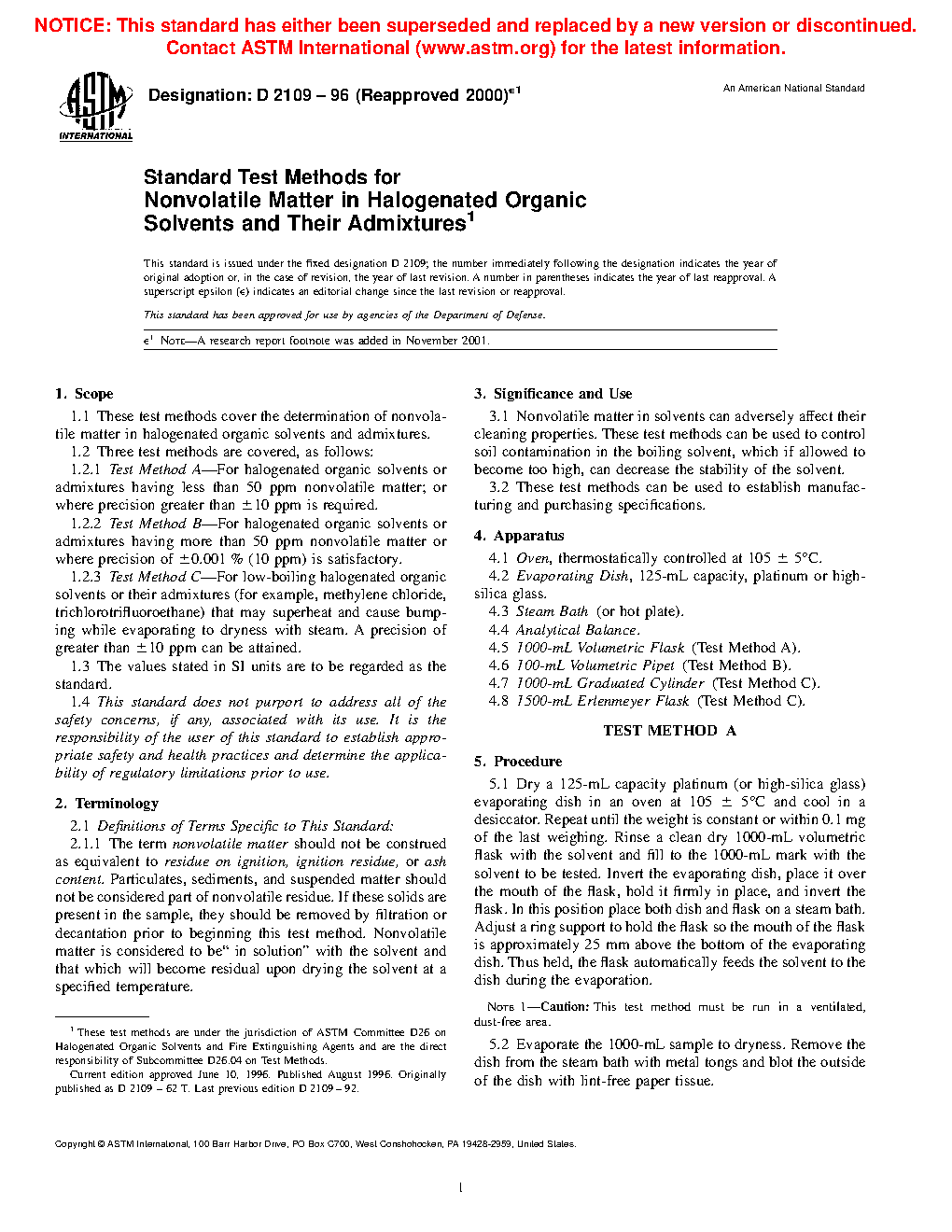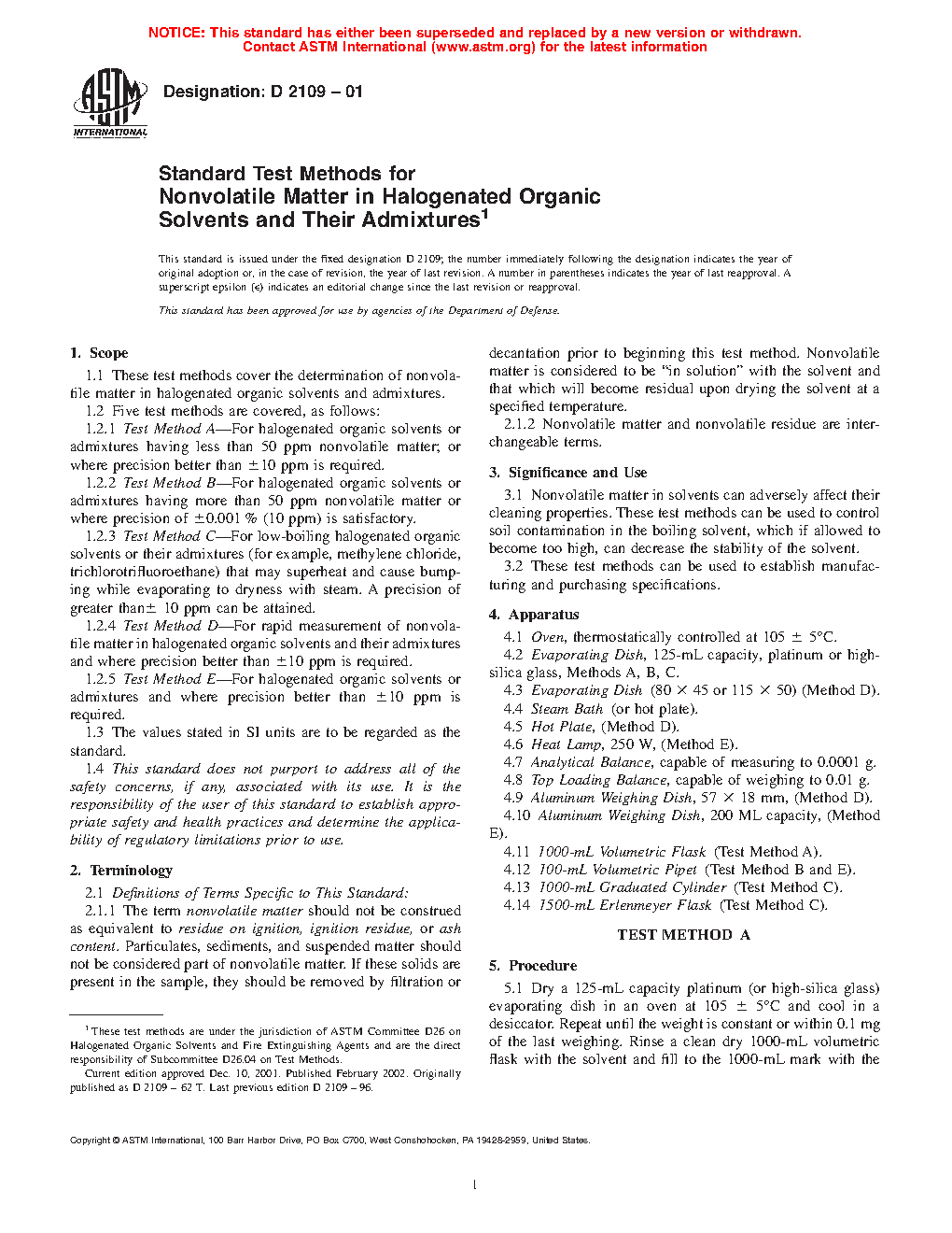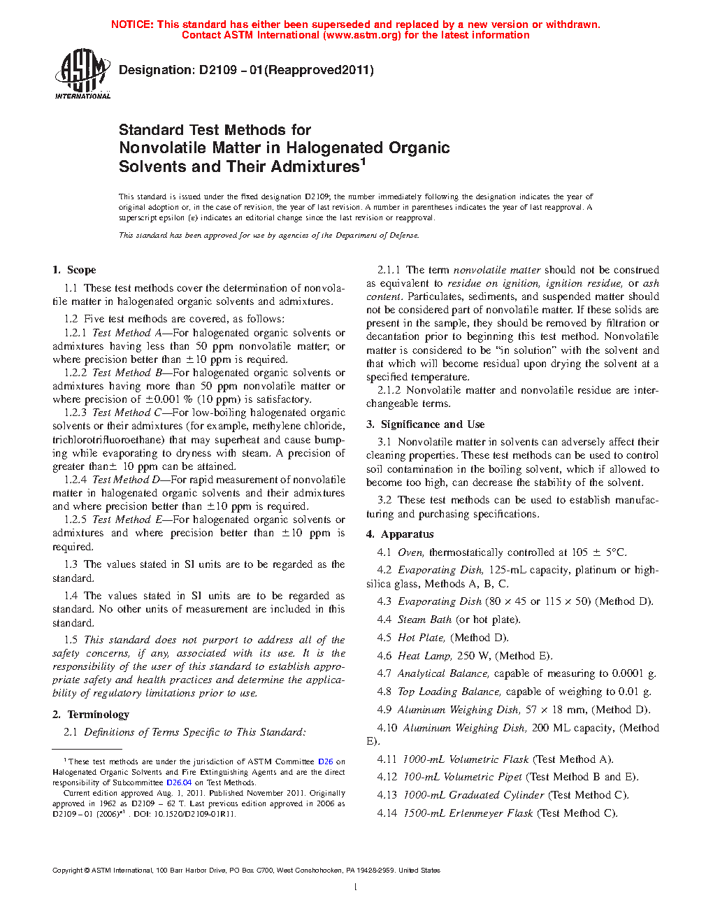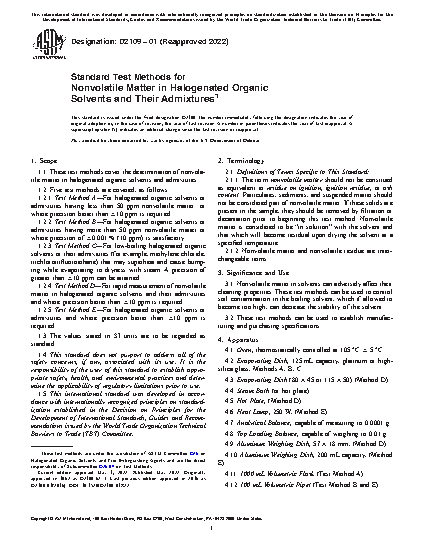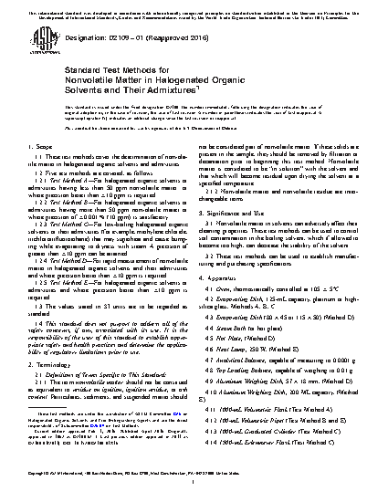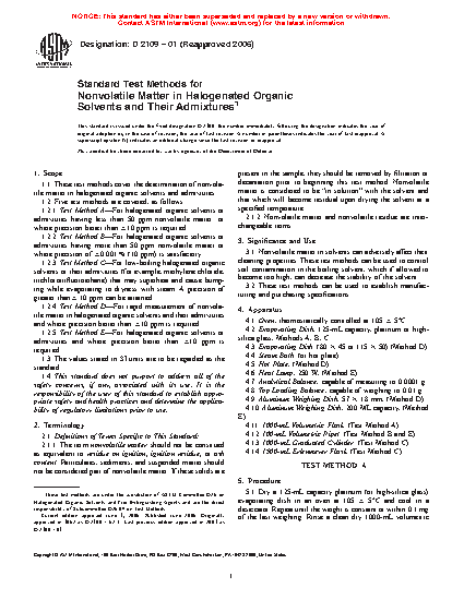 1.1 These test methods cover the determination of nonvolatile matter in halogenated organic solvents and admixtures.