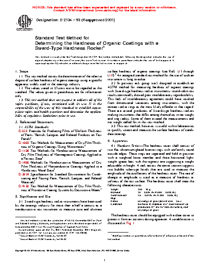 3.1 Sward-type hardness rocker instruments have been used by the coatings industry for more than a half a century as a nondestructive test instrument to measure cure and ultimate surface hardness of organic coatings (see Refs. (1) through (11)).4 An accepted standard test method for the use of such an instrument is long overdue.