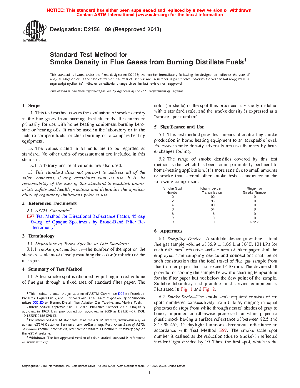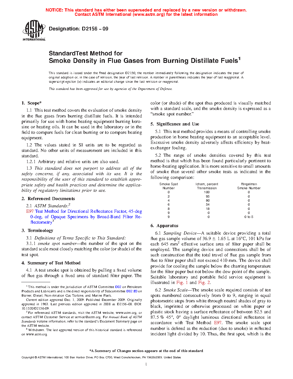 The range of smoke densities covered by this test method is that which has been found particularly pertinent to home-heating application. It is more sensitive to small amounts of smoke than several other smoke tests as indicated in the following comparison: