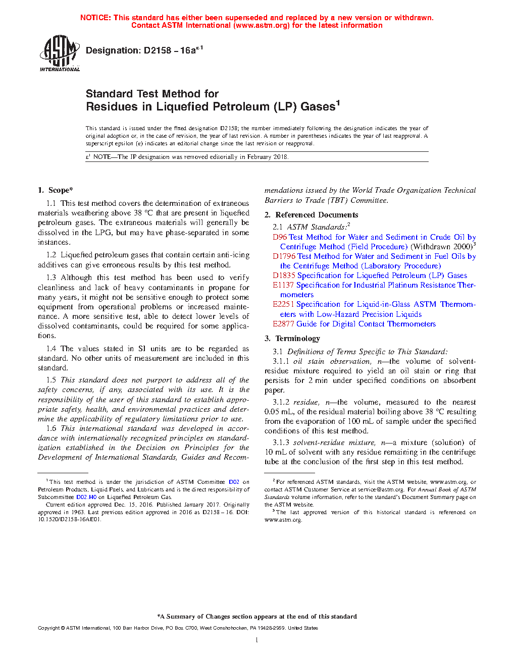 ASTM D2158-16ae1