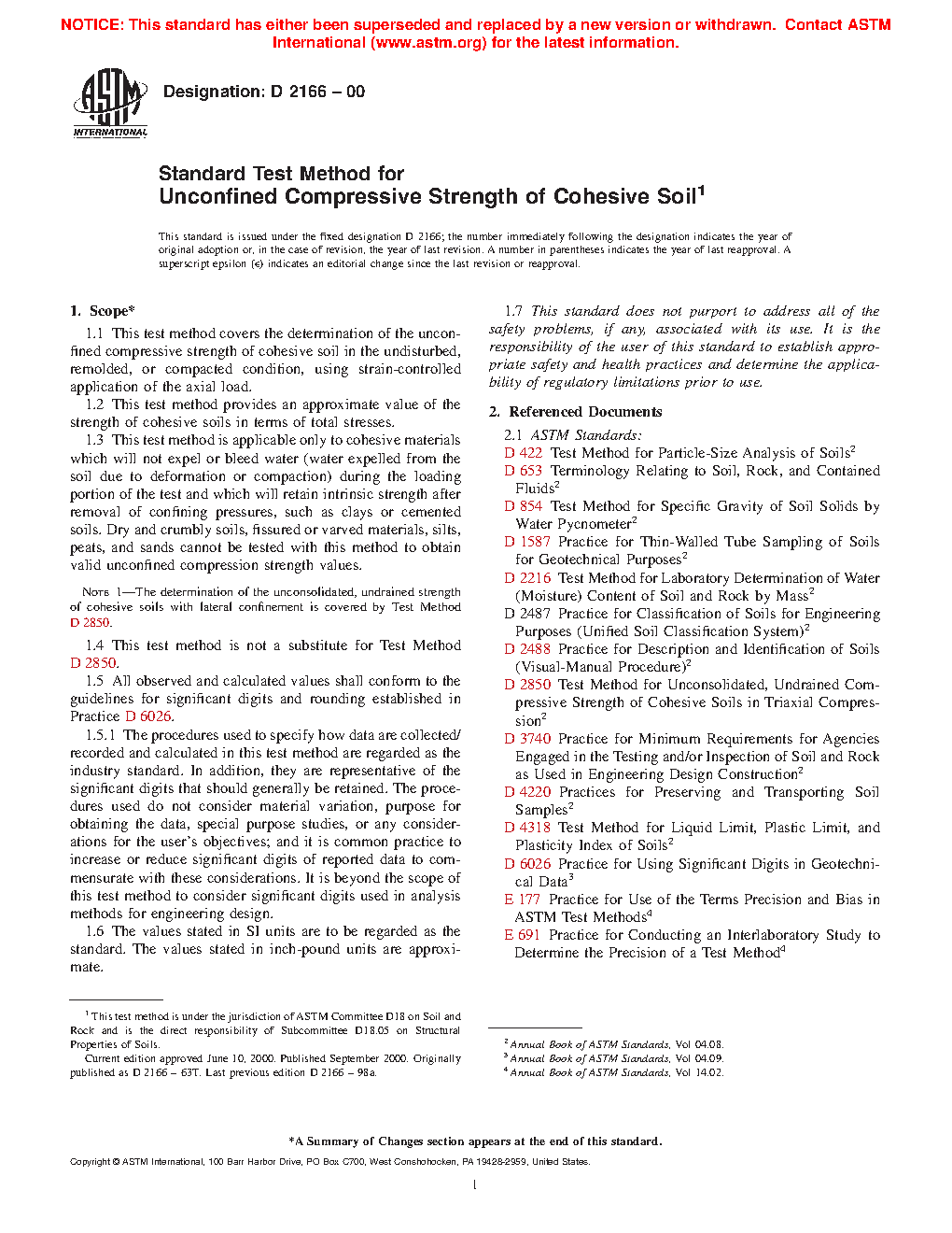 Note 1The determination of the unconsolidated, undrained strength of cohesive soils with lateral confinement is covered by Test Method D 2850.