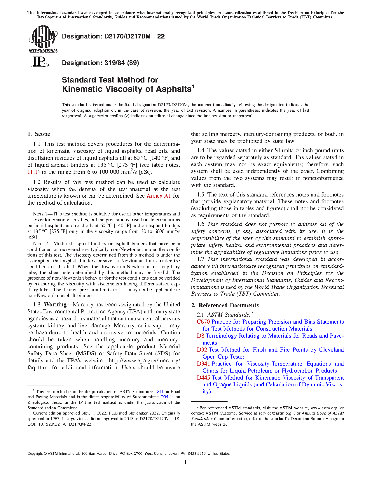 ASTM D2170/D2170M-22