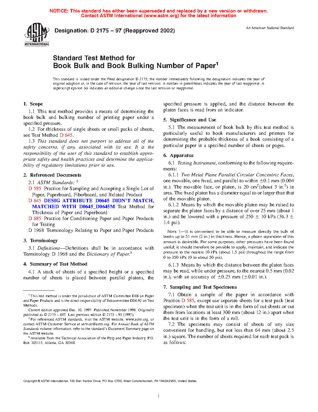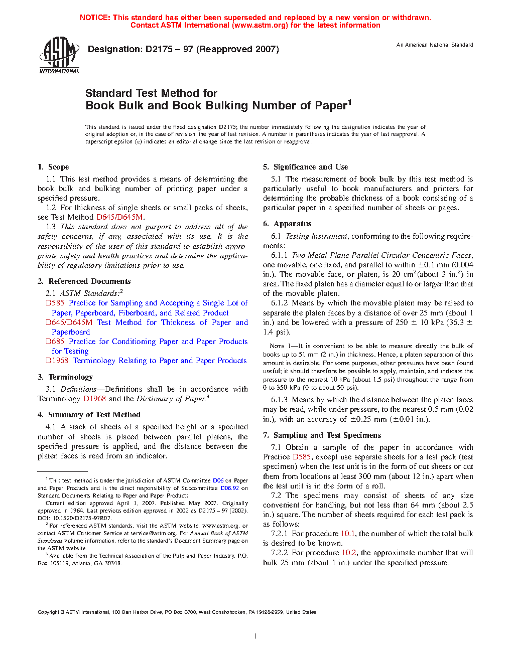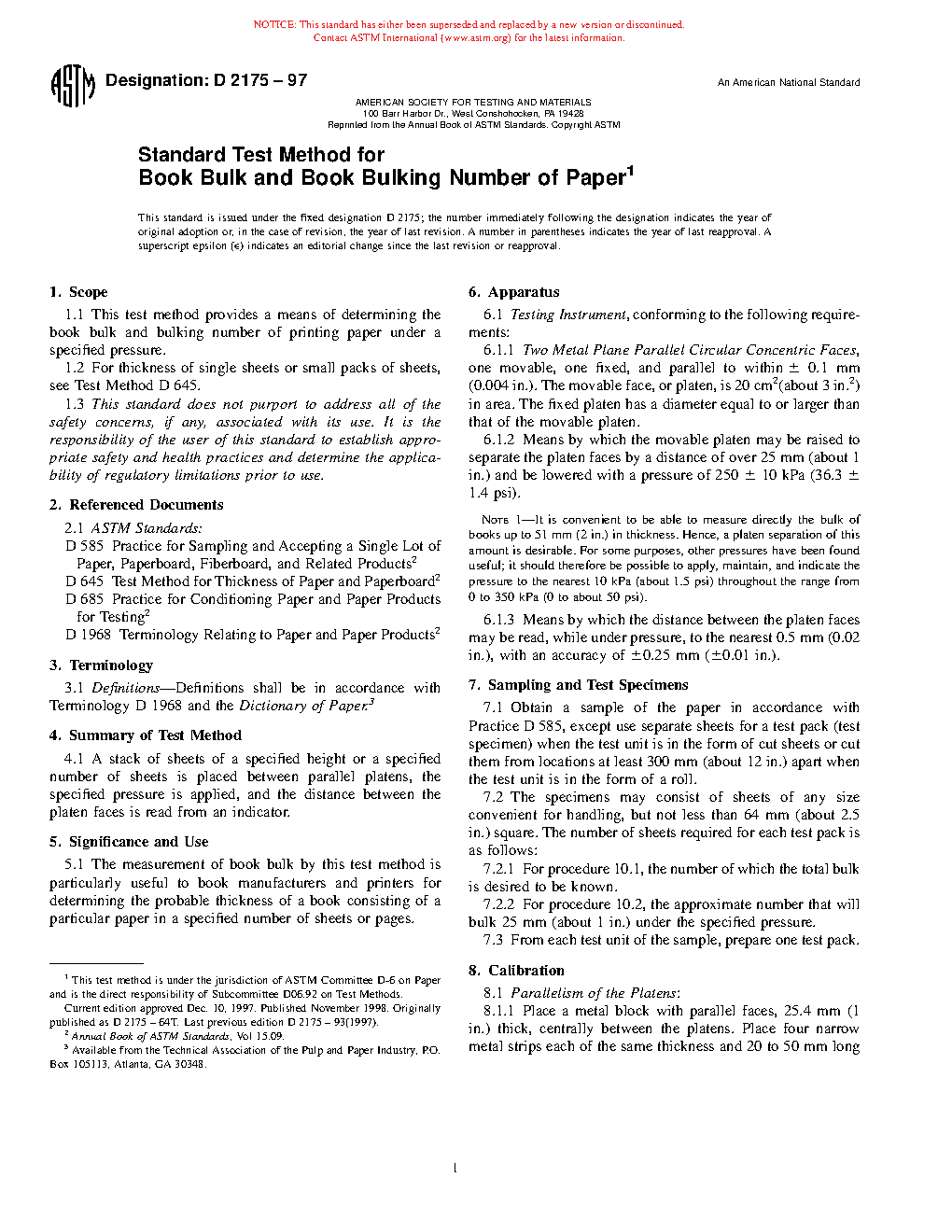 Standard Test Method for Book Bulk and Book Bulking Number of Paper (Withdrawn 2010)