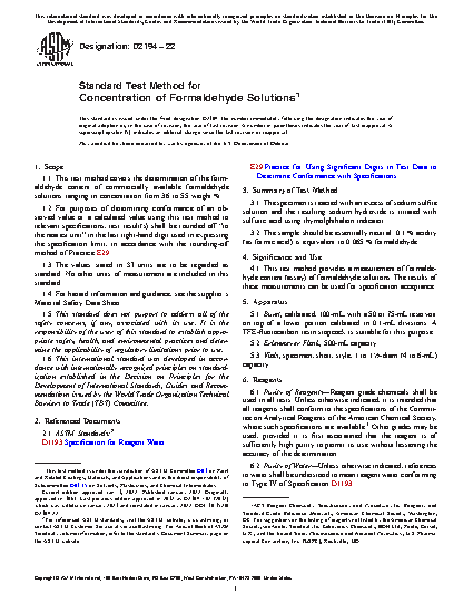 4.1 This test method provides a measurement of formaldehyde content (assay) of formaldehyde solutions. The results of these measurements can be used for specification acceptance.