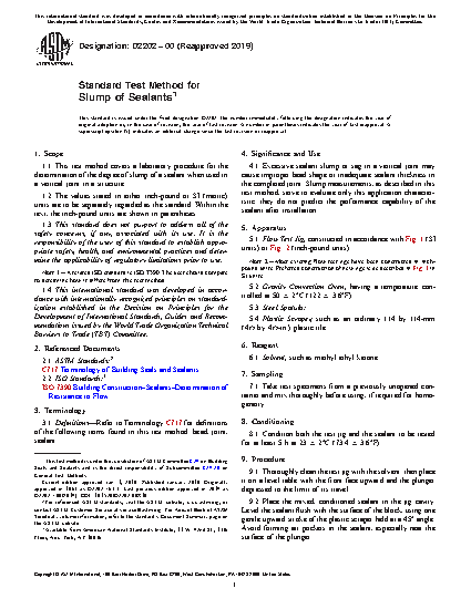 1.1 This test method covers a laboratory procedure for the determination of the degree of slump of a sealant when used in a vertical joint in a structure.