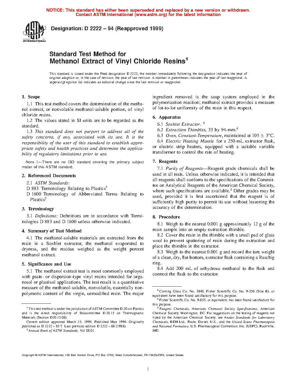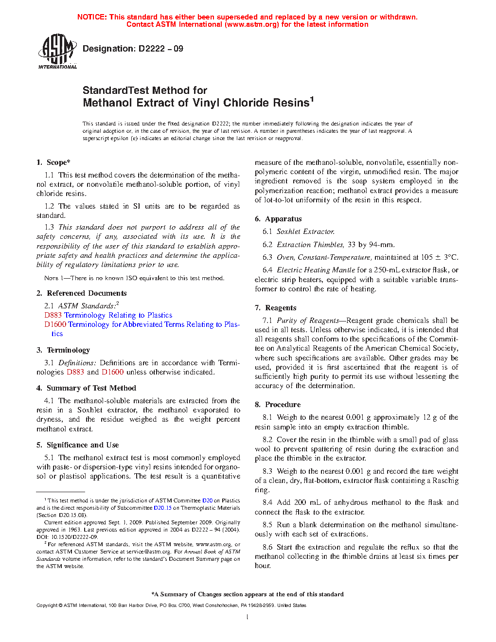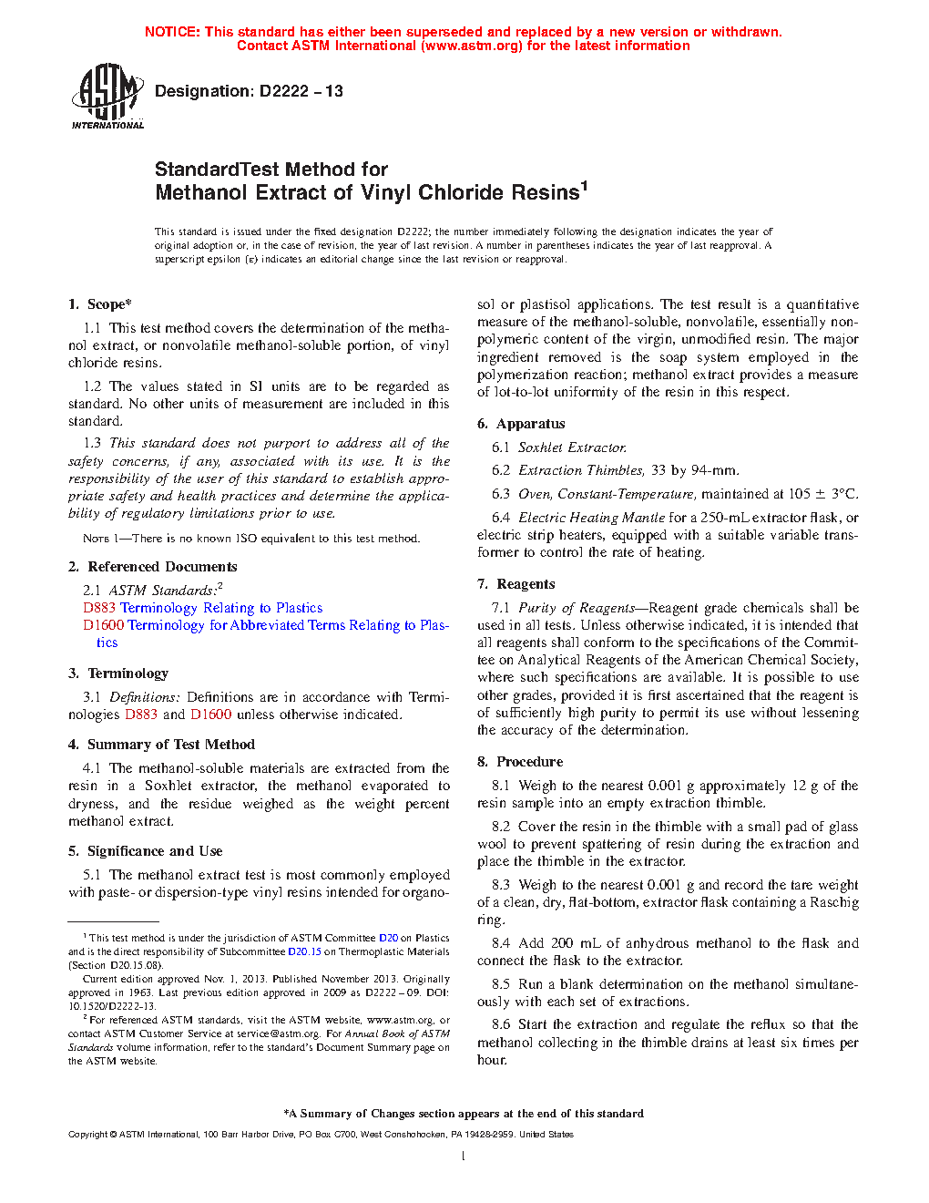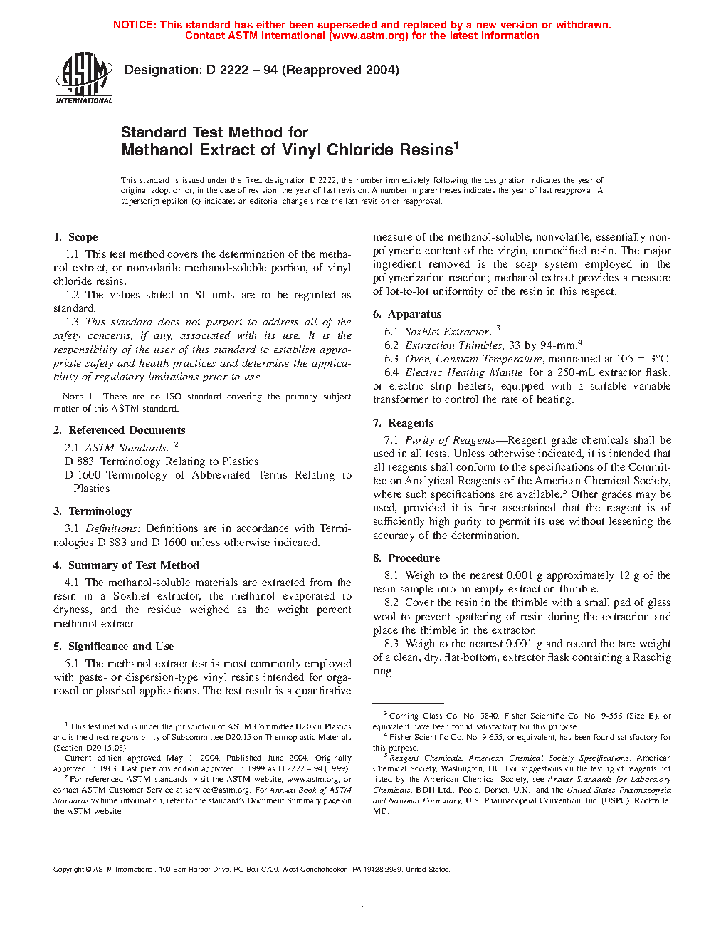 1.2 The methanol extract test is most commonly employed with paste- or dispersion-type vinyl resins intended for organosol or plastisol applications. The major ingredient removed is the soap system employed in the polymerization reaction.
