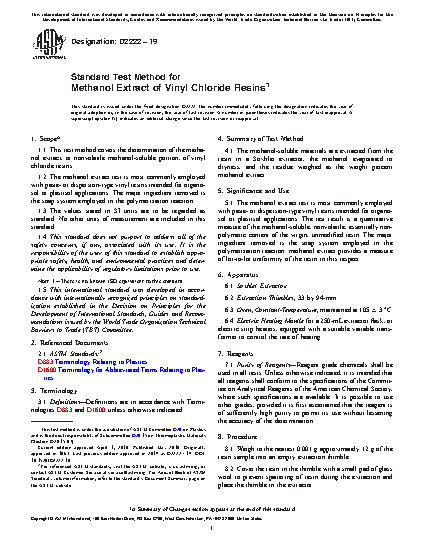 1.1 This test method covers the determination of the methanol extract, or nonvolatile methanol-soluble portion, of vinyl chloride resins.