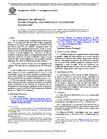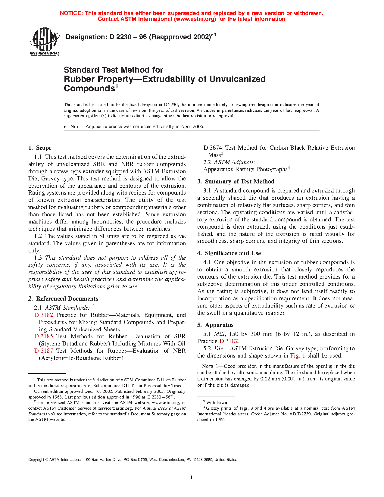 4.1 One objective in the extrusion of rubber compounds is to obtain a smooth extrusion that closely reproduces the contours of the extrusion die. This test method provides for a subjective determination of this under controlled conditions. As the rating is subjective, it does not lend itself readily to incorporation as a specification requirement. It does not measure other aspects of extrudability such as rate of extrusion or die swell in a quantitative manner.