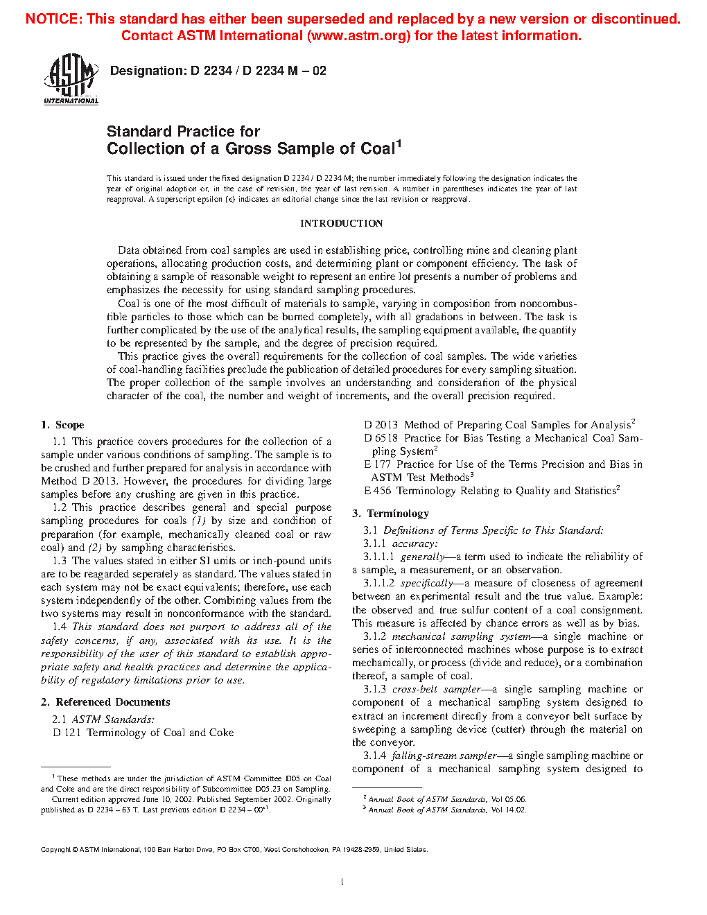 ASTM D2234/D2234M-20