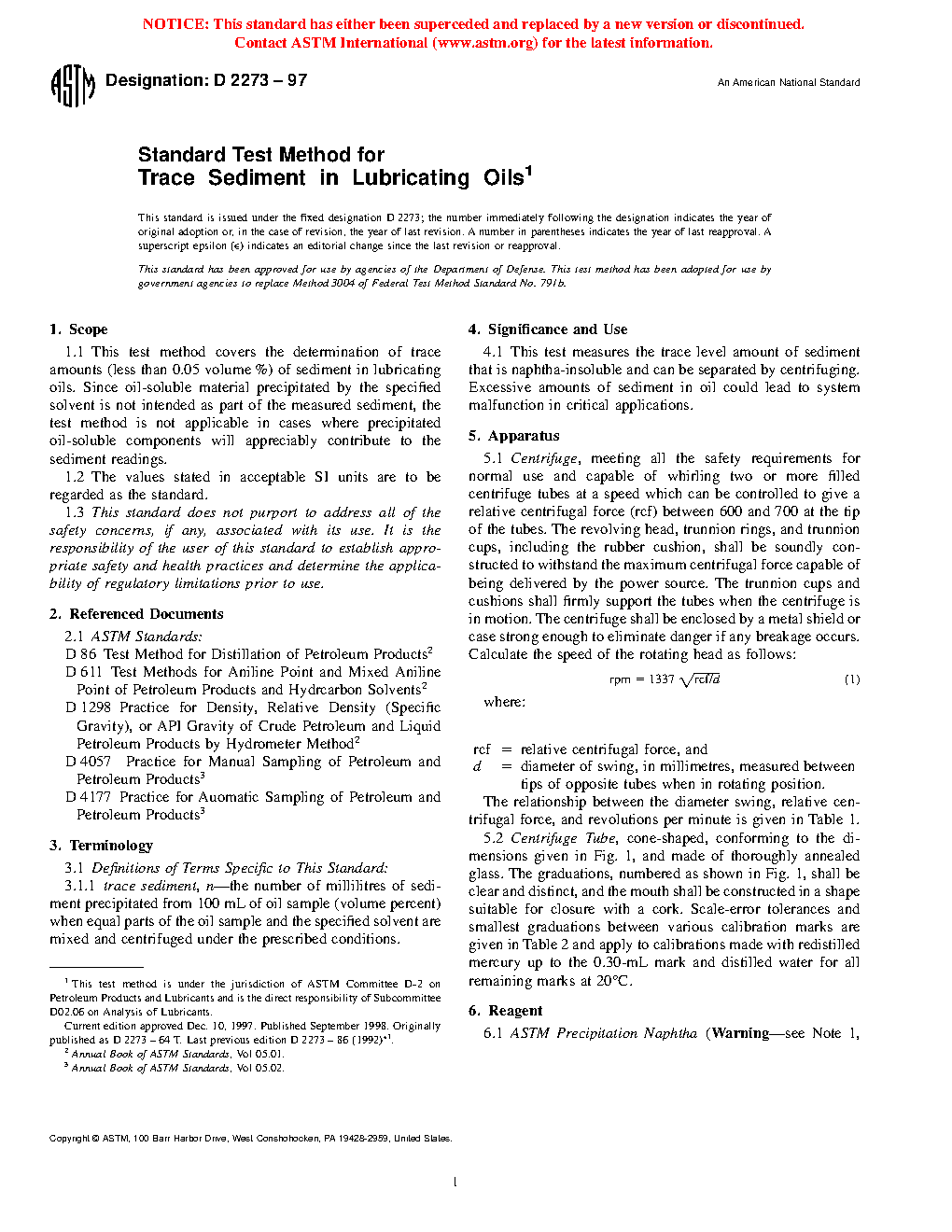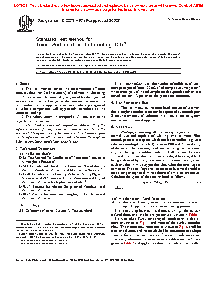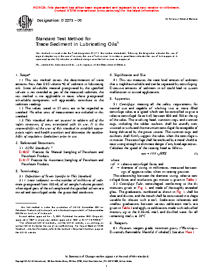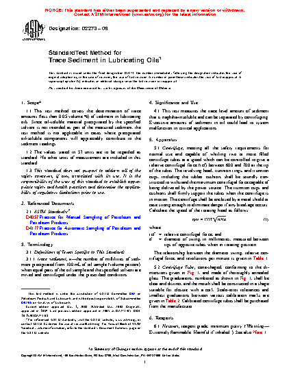 1.1 This test method covers the determination of trace amounts (less than 0.05 % by volume) of sediment in lubricating oils. Since oil-soluble material precipitated by the specified solvent is not intended as part of the measured sediment, the test method is not applicable in cases where precipitated oil-soluble components will appreciably contribute to the sediment readings.