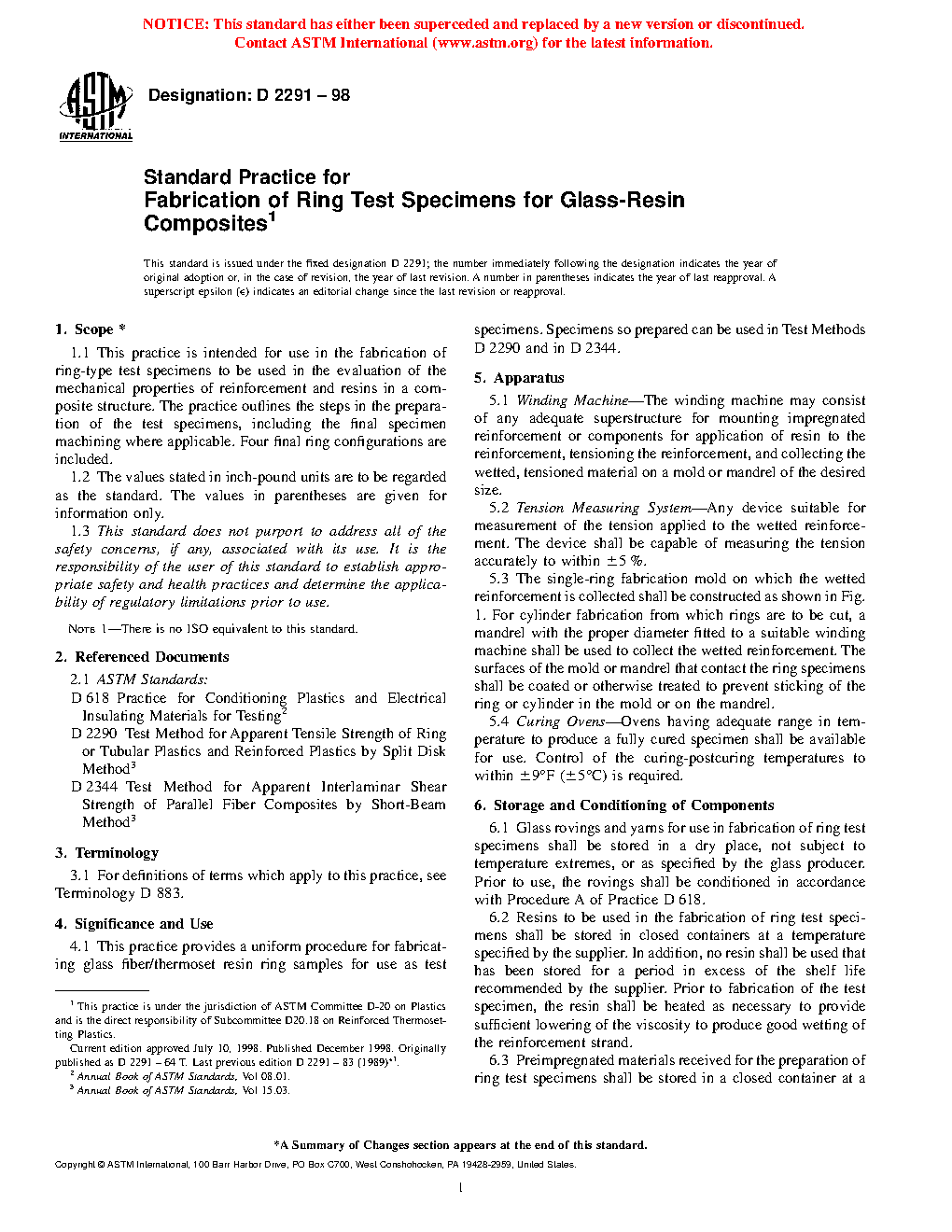 This practice provides a uniform procedure for fabricating glass fiber/thermoset resin ring samples for use as test specimens. Specimens so prepared can be used in Test Methods D 2290