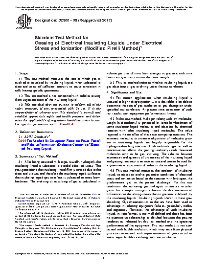 4.1 For certain applications when insulating liquid is stressed at high voltage gradients, it is desirable to be able to determine the rate of gas evolution or gas absorption under specified test conditions. At present time correlation of such test results with equipment performance is limited.