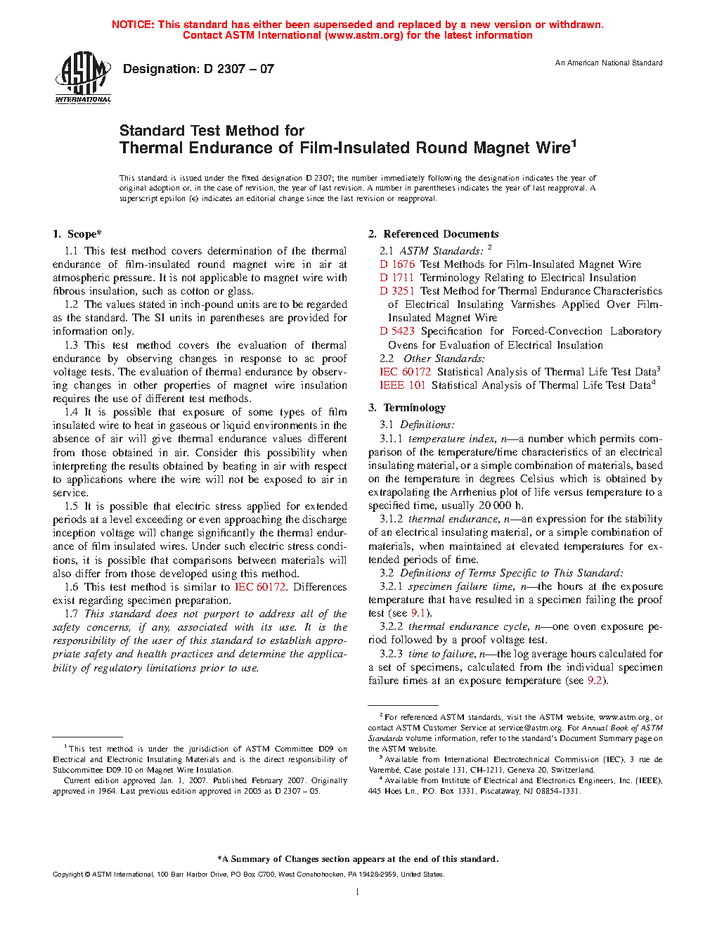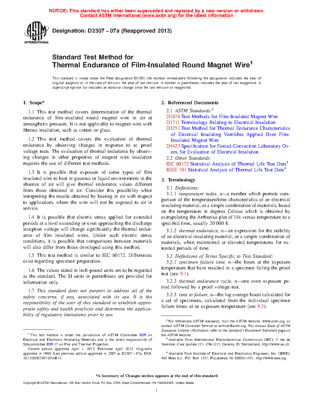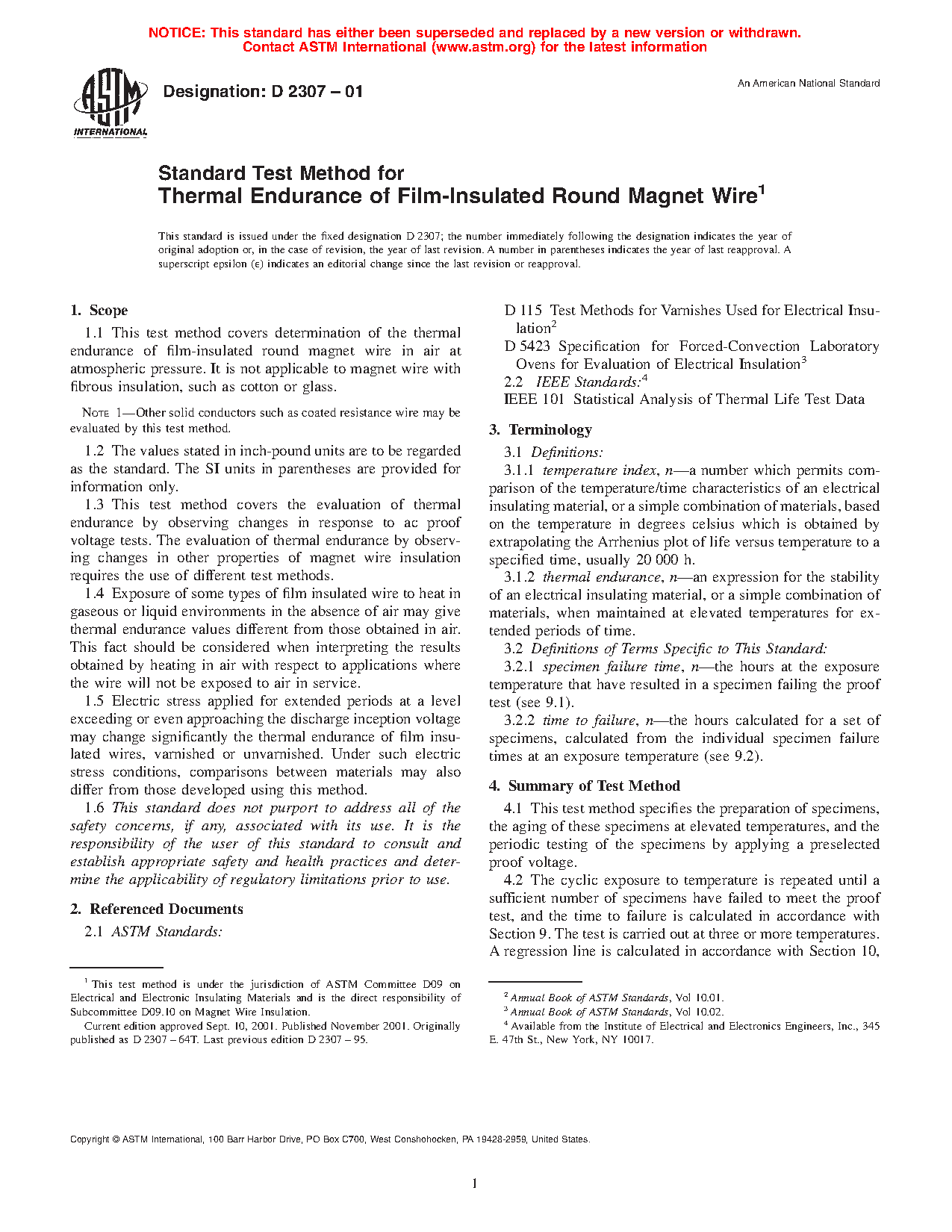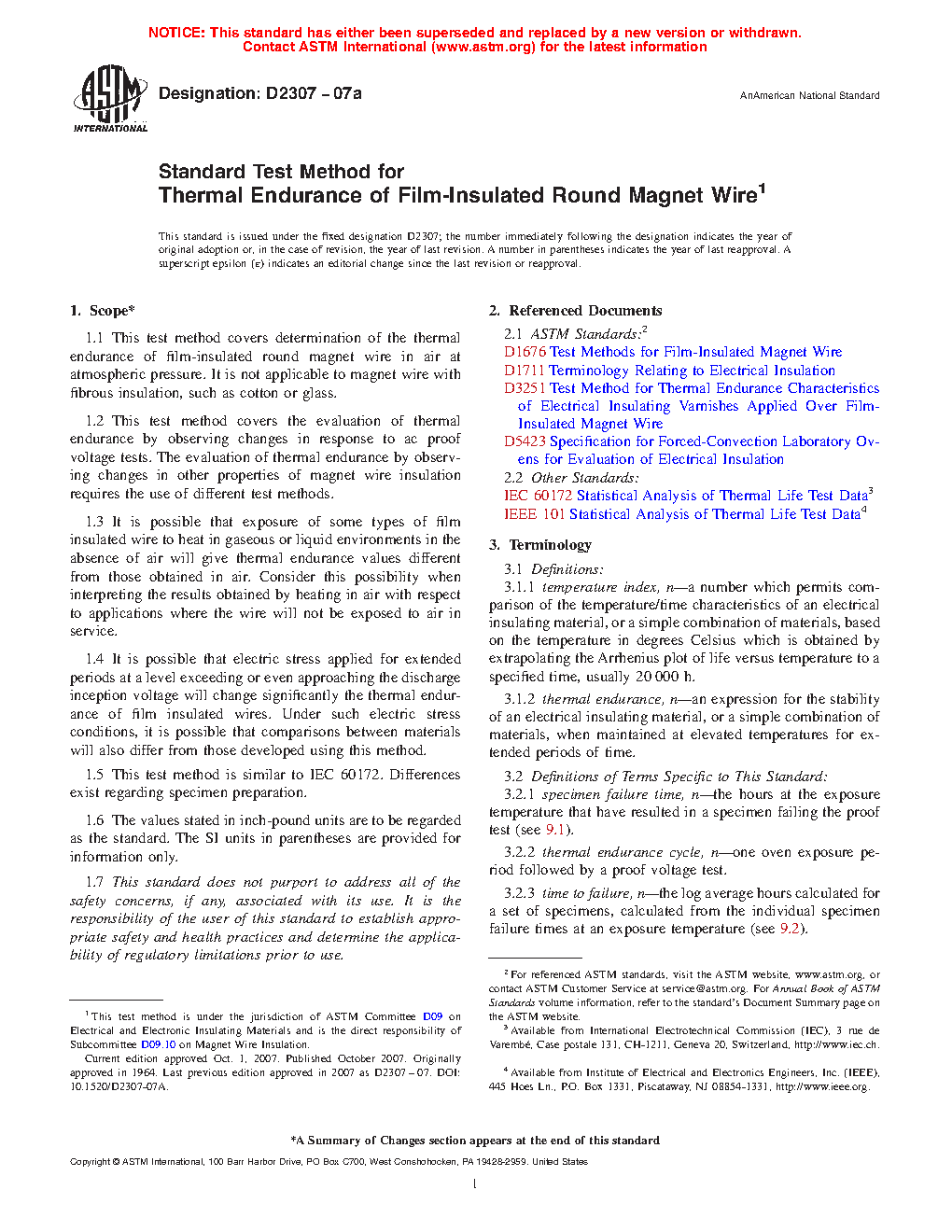 1.3 This test method covers the evaluation of thermal endurance by observing changes in response to ac proof voltage tests. The evaluation of thermal endurance by observing changes in other properties of magnet wire insulation requires the use of different test methods.