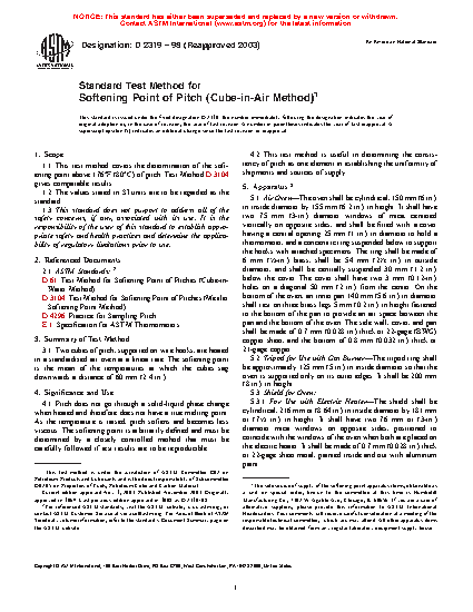 1.1 This test method covers the determination of the softening point above 80°C [176°F] of pitch. Test Method D 3104