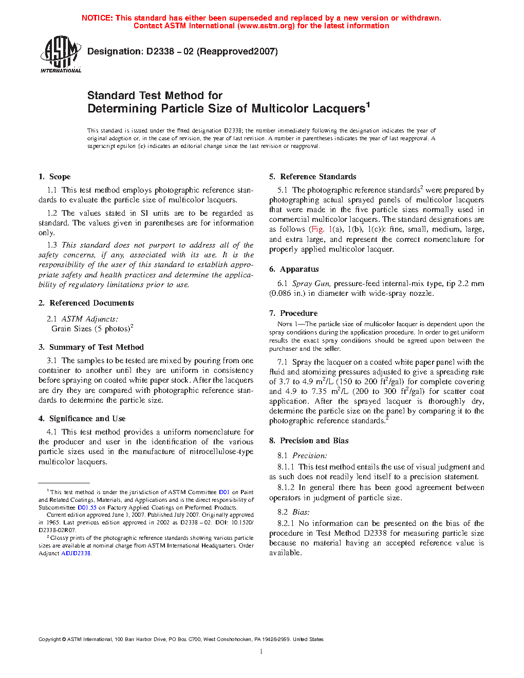 1.1 This test method employs photographic reference standards to evaluate the particle size of multicolor lacquers.