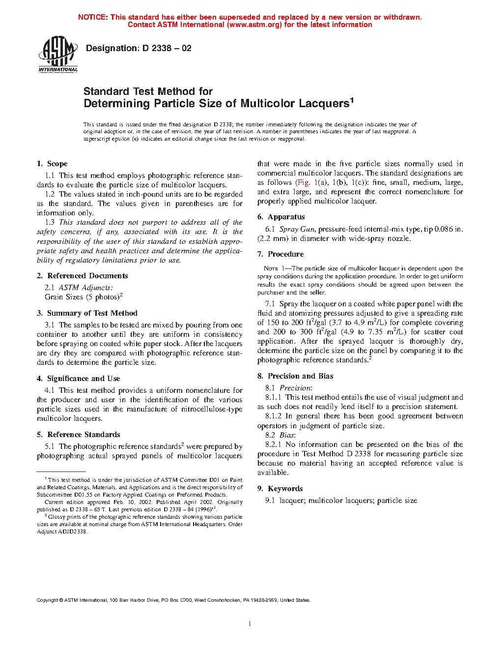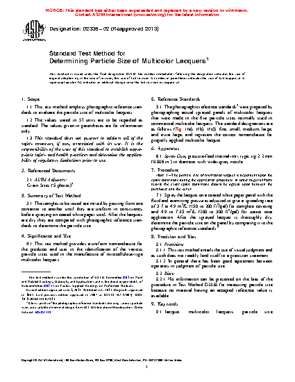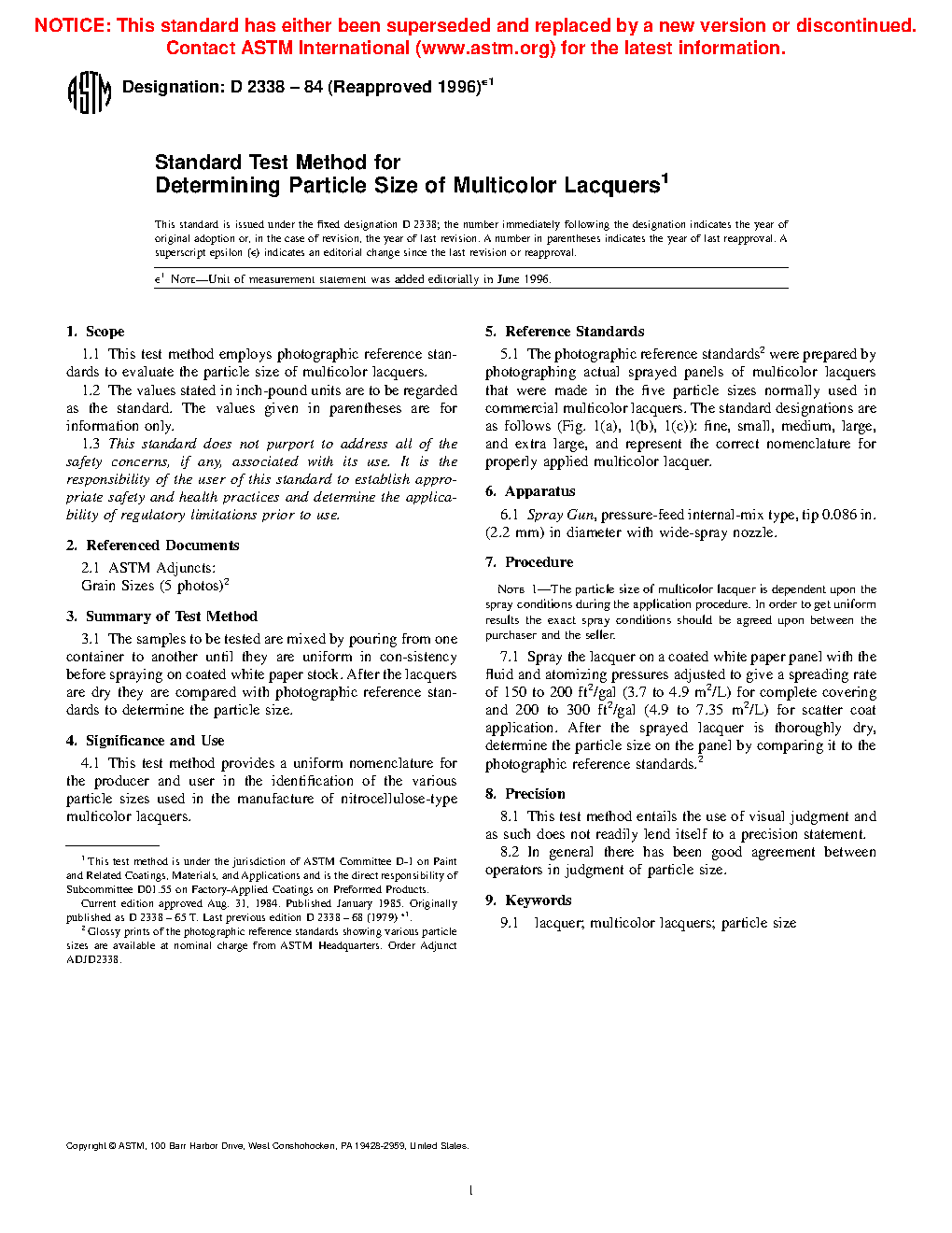 Standard Test Method for Determining Particle Size of Multicolor Lacquers (Withdrawn 2020)