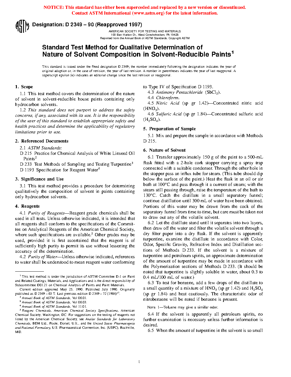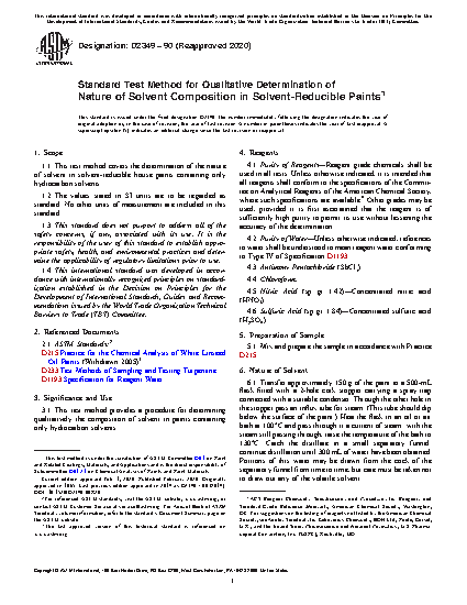 This test method provides a procedure for determining qualitatively the composition of solvent in paints containing only hydrocarbon solvents.