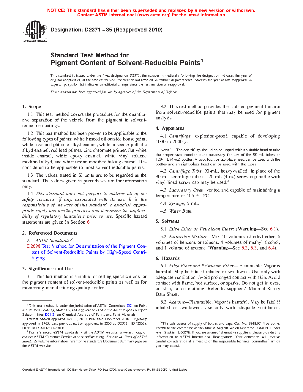 3.2 This test method provides the isolated pigment fraction from solvent-reducible paints that may be used for pigment analysis.