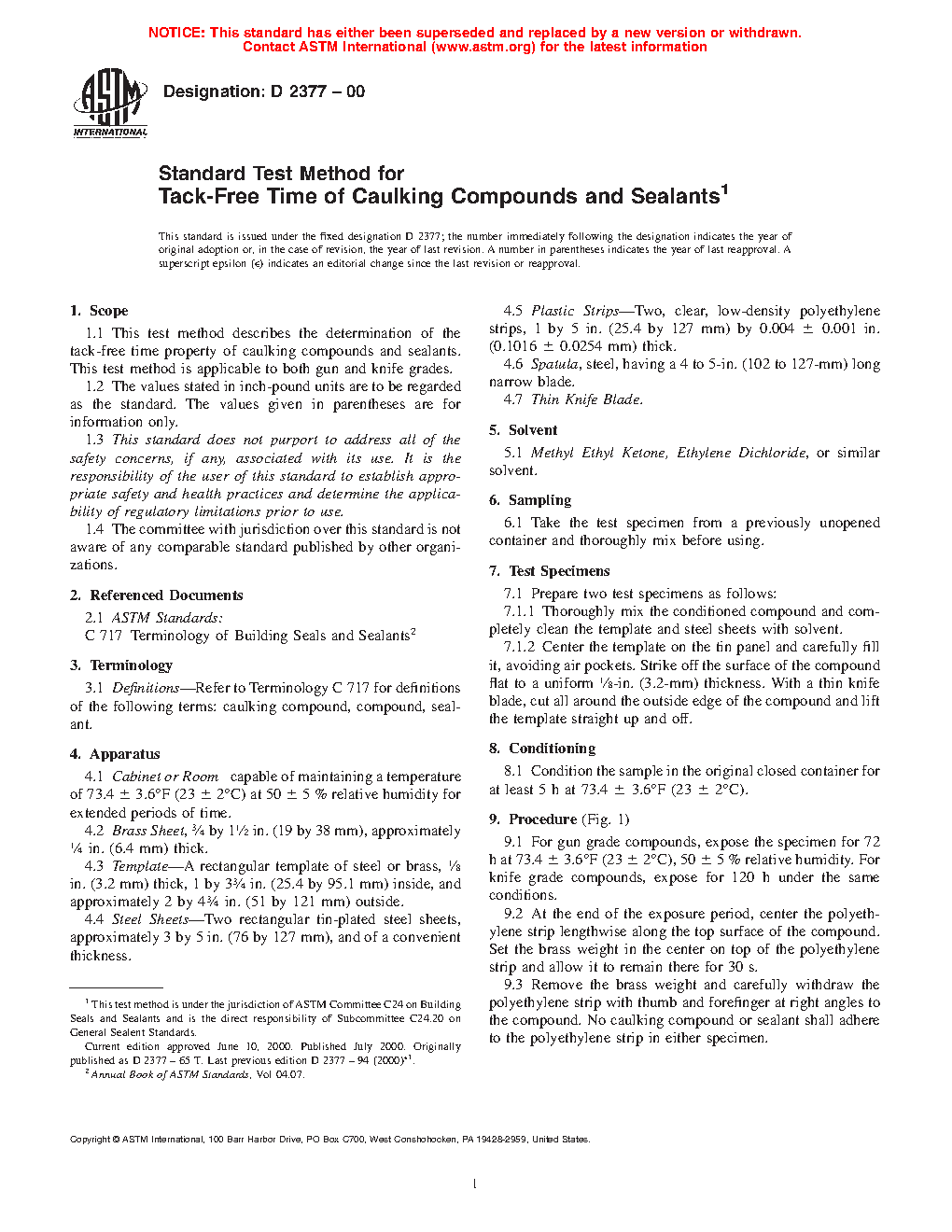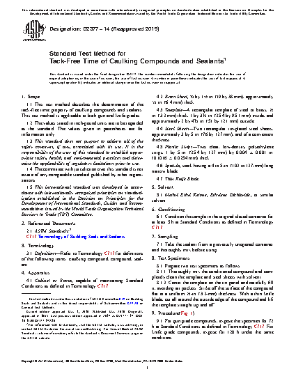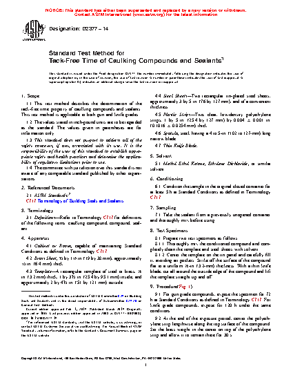 1.1 This test method describes the determination of the tack-free time property of caulking compounds and sealants. This test method is applicable to both gun and knife grades.