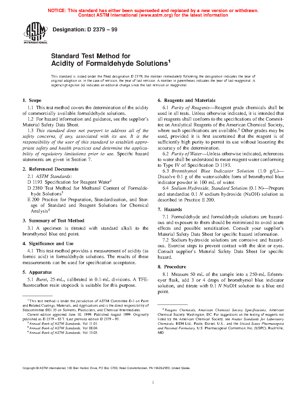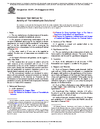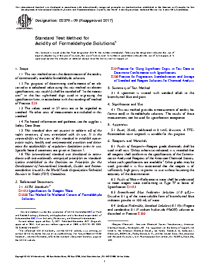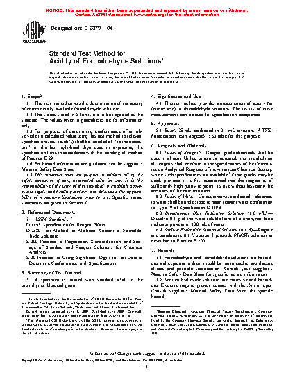 1.1 This test method covers the determination of the acidity of commercially available formaldehyde solutions.
