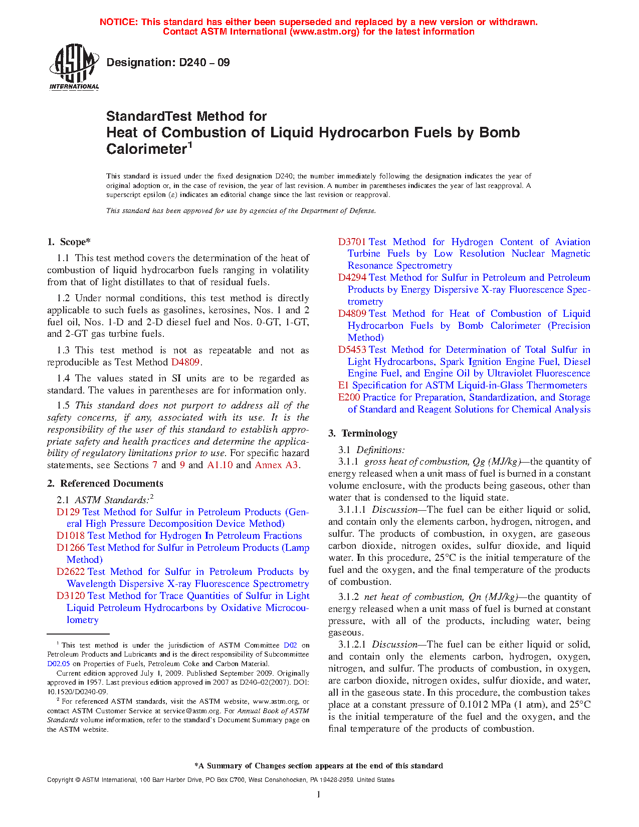 5.2 The heat of combustion as determined by this test method is designated as one of the chemical and physical requirements of both commercial and military turbine fuels and aviation gasolines.