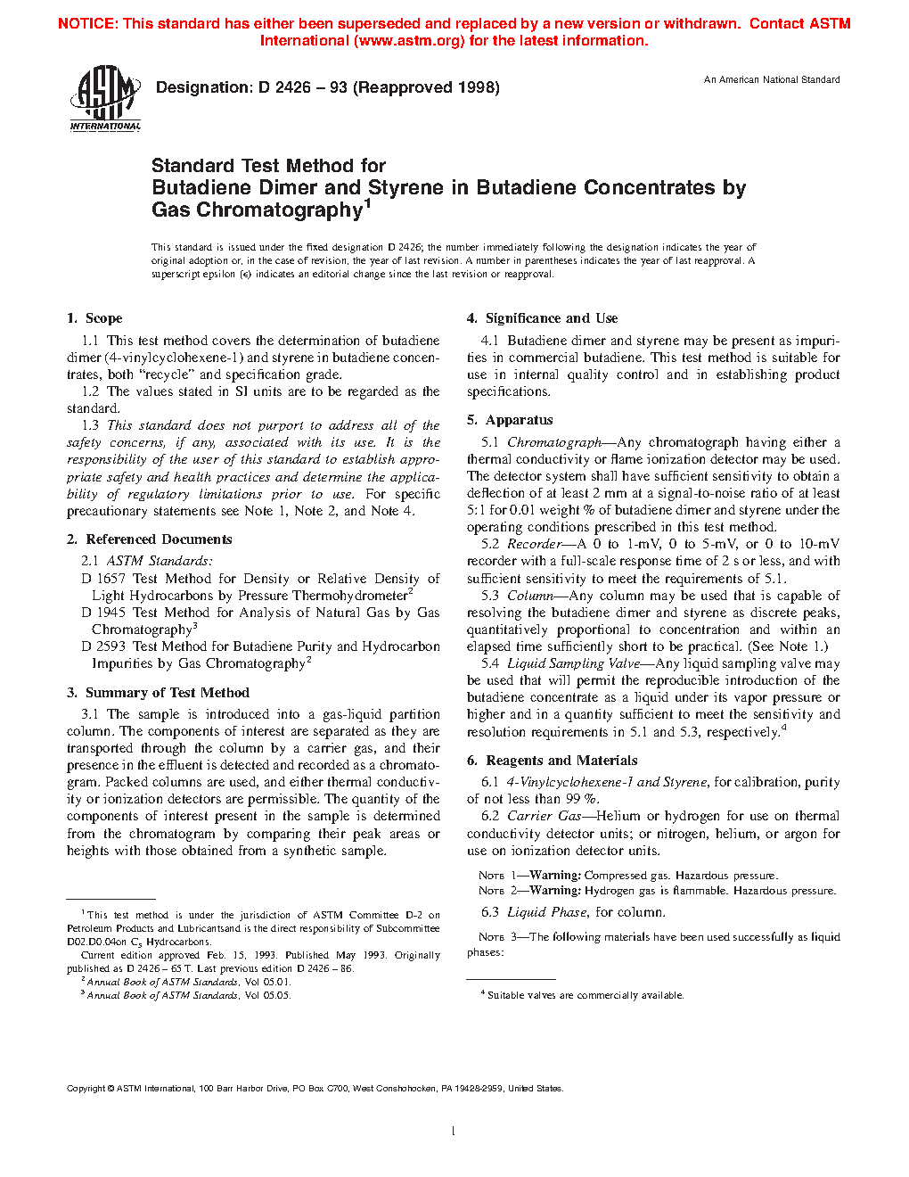 4.1 Butadiene dimer and styrene may be present as impurities in commercial butadiene. This test method is suitable for use in internal quality control and in establishing product specifications.