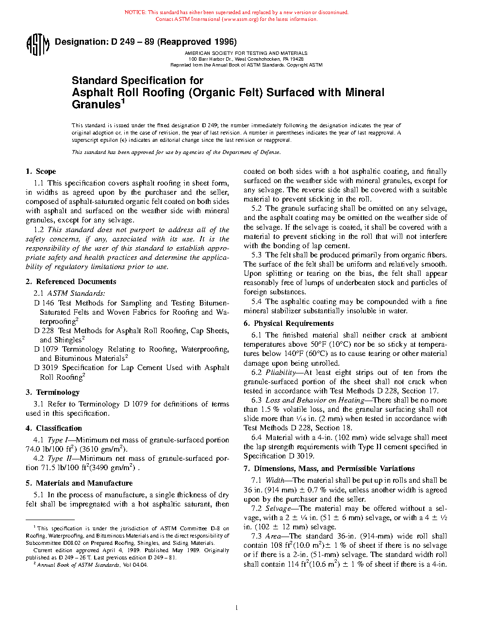 ASTM D249-89(1996) (R1989)