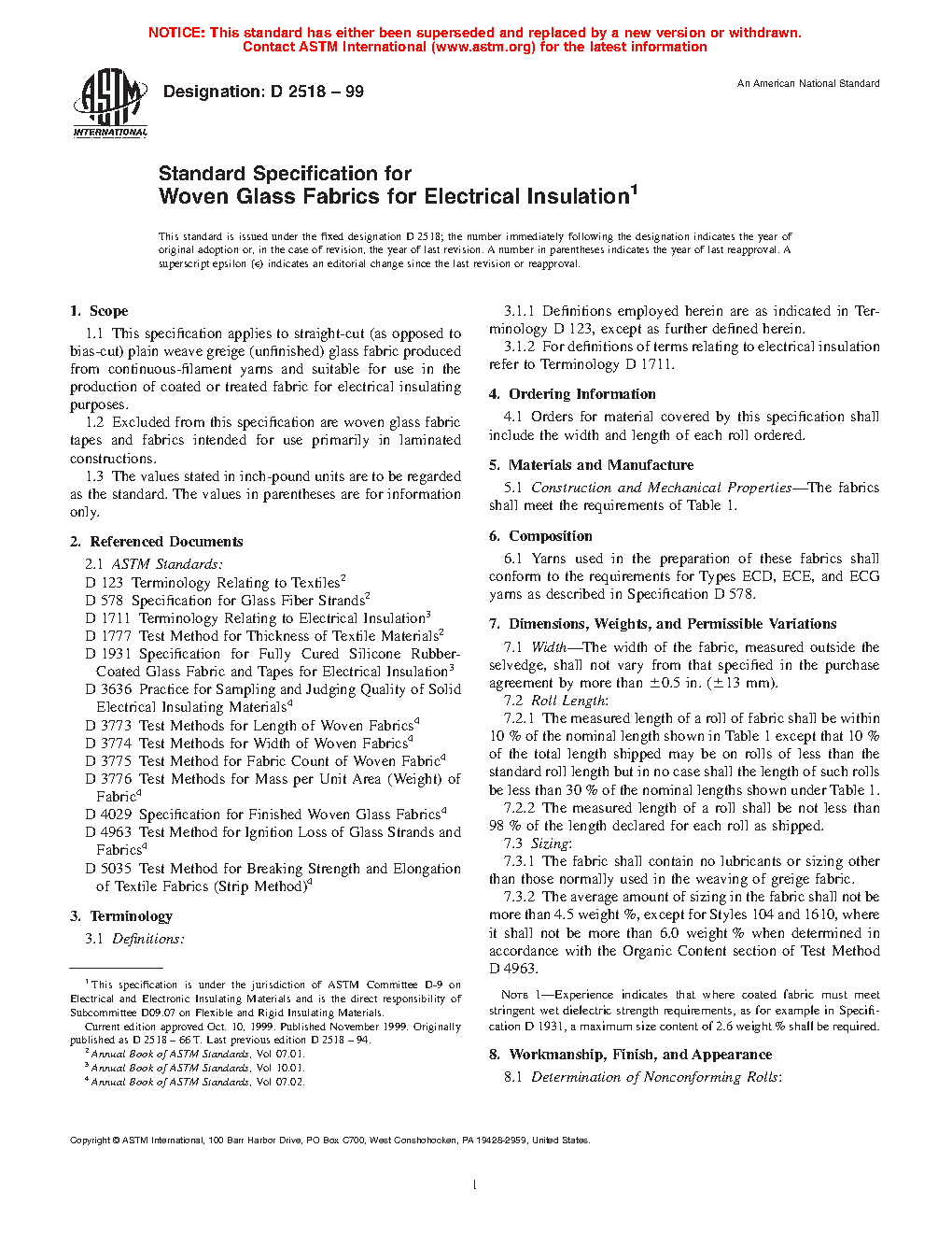 1.1 This specification applies to straight-cut (as opposed to bias-cut) plain weave greige (unfinished) glass fabric produced from continuous-filament yarns and suitable for use in the production of coated or treated fabric for electrical insulating purposes.