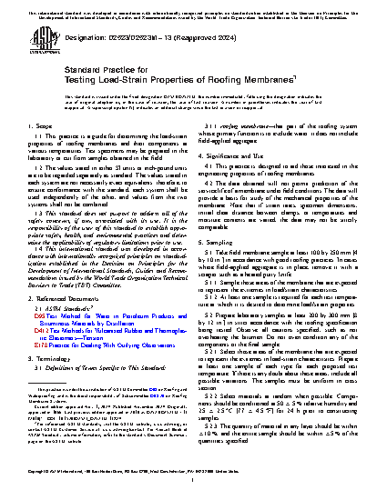 1.1 This practice is a guide for determining the load-strain properties of roofing membranes and their components at various temperatures. Test specimens may be prepared in the laboratory or cut from samples obtained in the field.