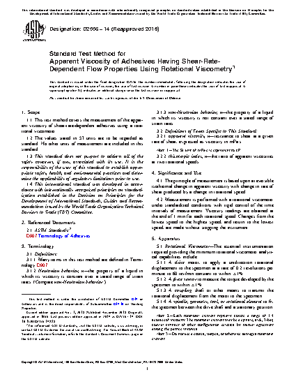 Standard Test Method for Apparent Viscosity of Adhesives Having Shear-Rate-Dependent Flow Properties