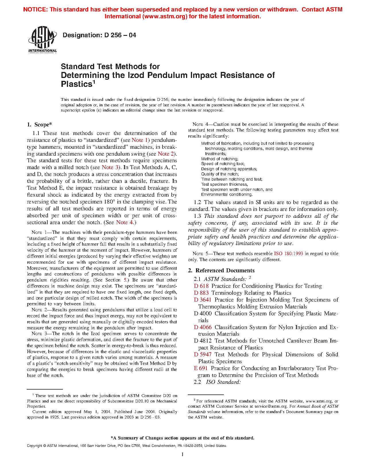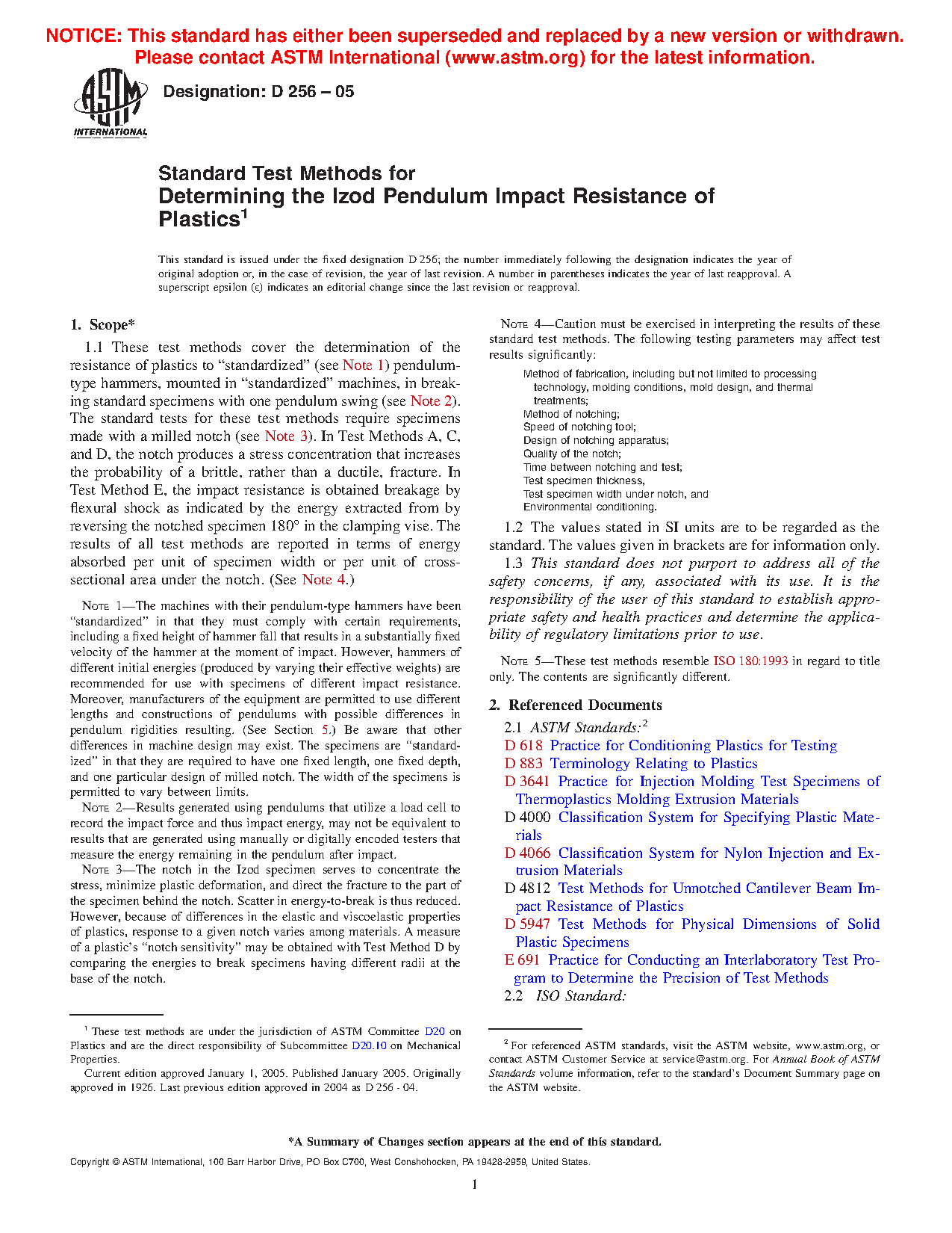 Note 5: These test methods resemble ISO 180:1993 in regard to title only. The contents are significantly different.