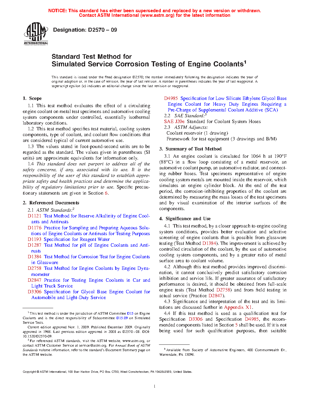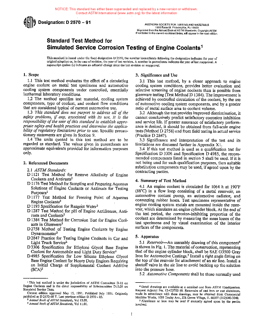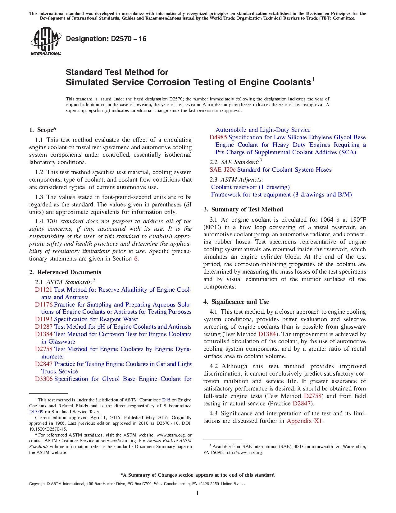 4.1 This test method, by a closer approach to engine cooling system conditions, provides better evaluation and selective screening of engine coolants than is possible from glassware testing (Test Method D1384). The improvement is achieved by controlled circulation of the coolant, by the use of automotive cooling system components, and by a greater ratio of metal surface area to coolant volume.