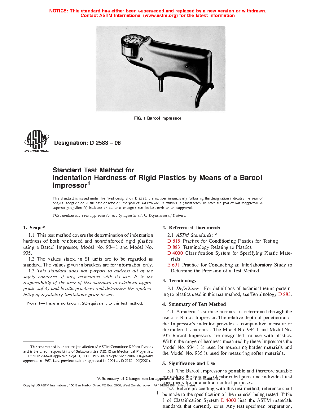 5.1 The Barcol Impressor is portable and therefore suitable for testing the hardness of fabricated parts and individual test specimens for production control purposes.