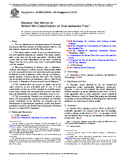 1.1 This test method covers the determination of the length distribution and fines content of milled asbestos fiber by wet classification employing the McNett fiber classifier.