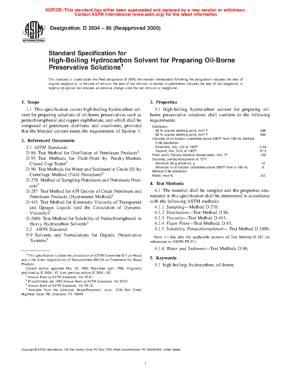 Standard Specification for High-Boiling Hydrocarbon Solvent for Preparing Oil-Borne Preservative Solutions (Withdrawn 2006)