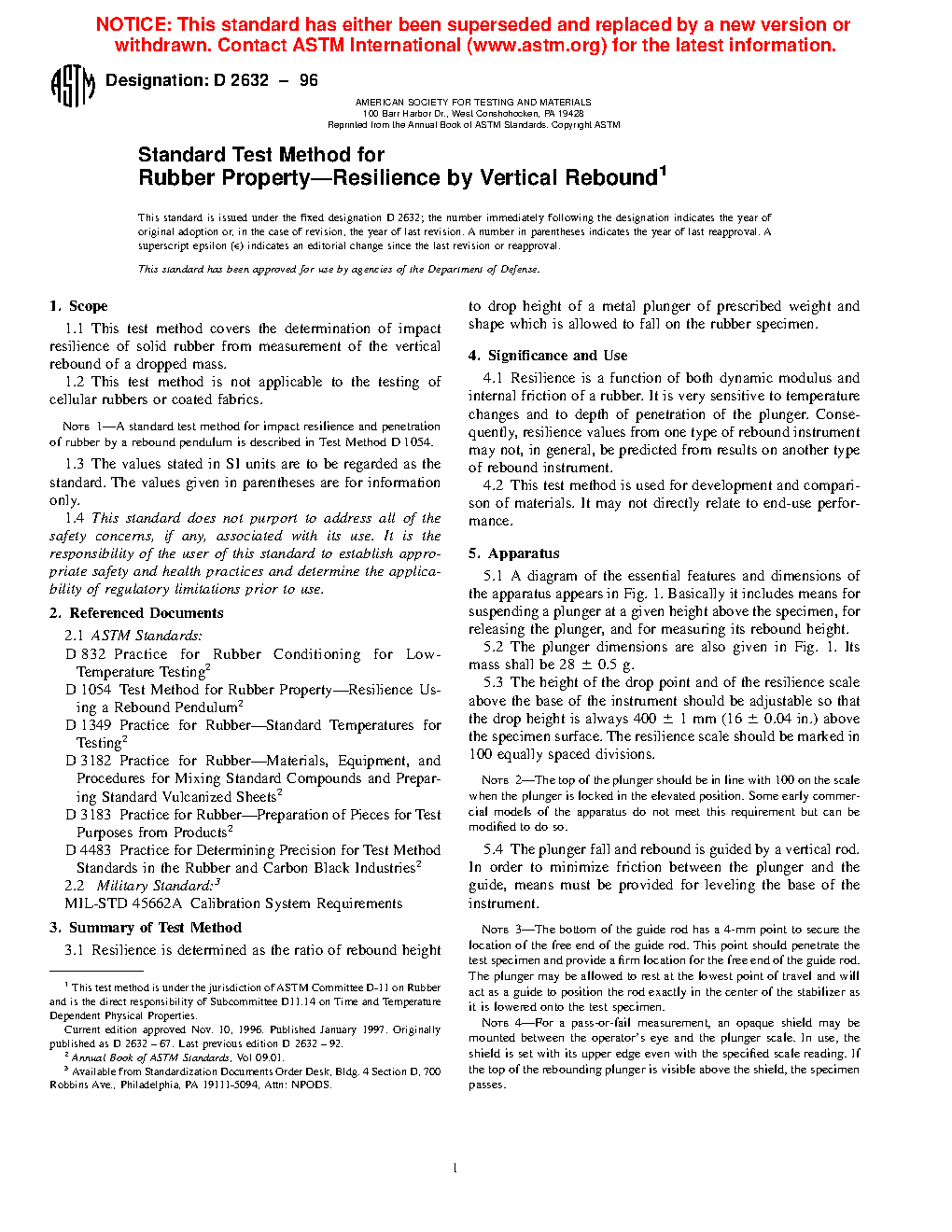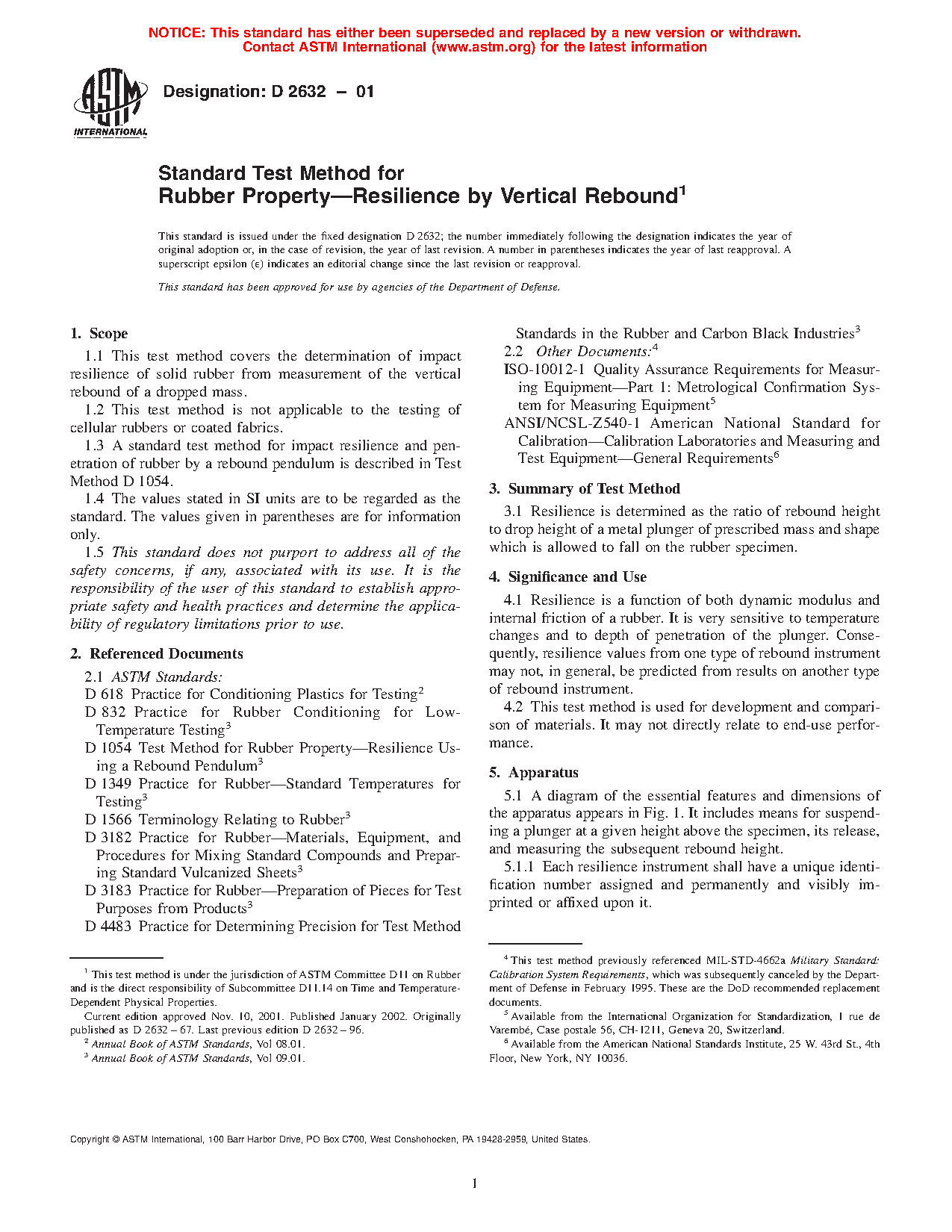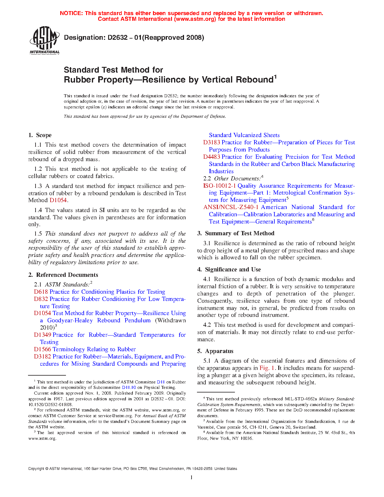 1.3 A standard test method for impact resilience and penetration of rubber by a rebound pendulum is described in Test Method D1054.