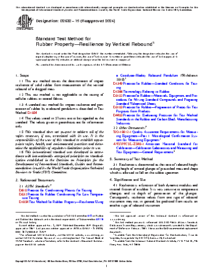 1.1 This test method covers the determination of impact resilience of solid rubber from measurement of the vertical rebound of a dropped mass.
