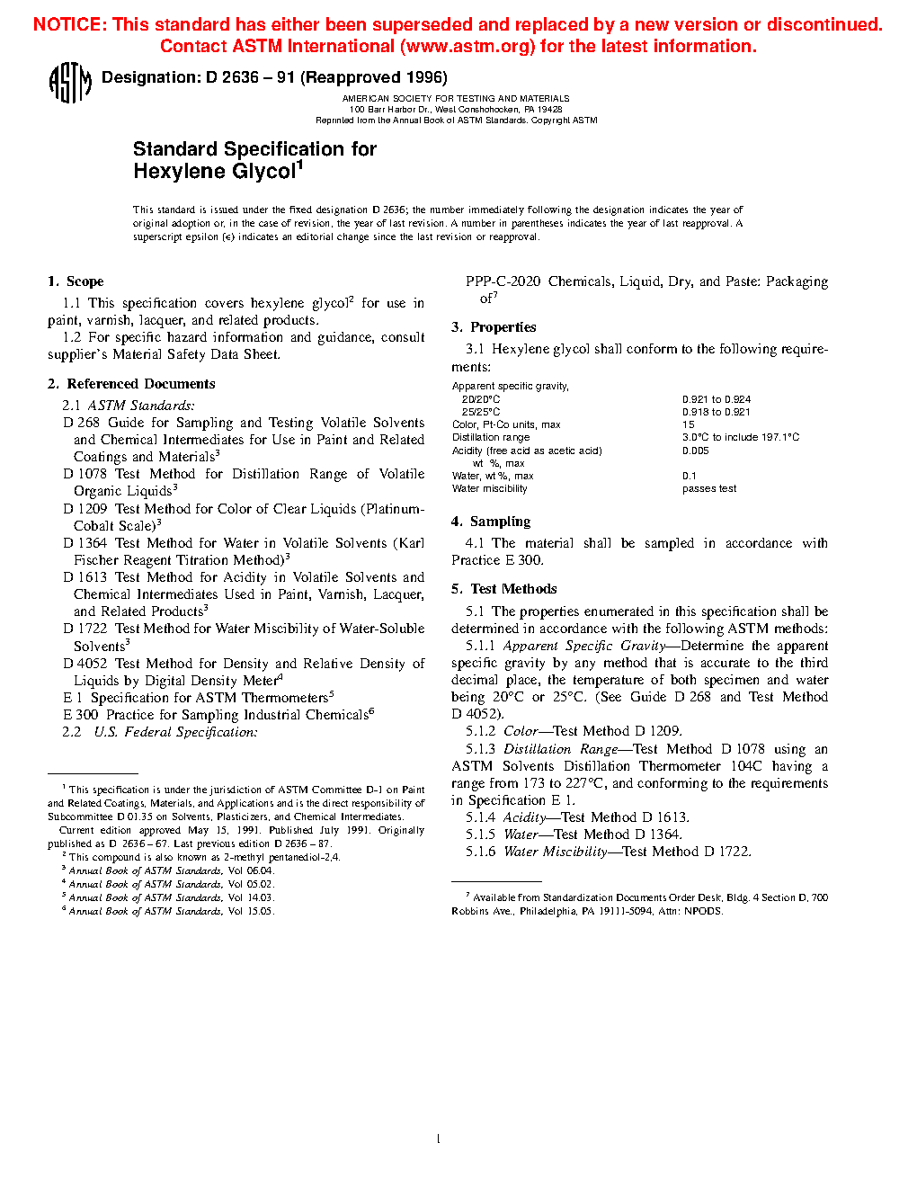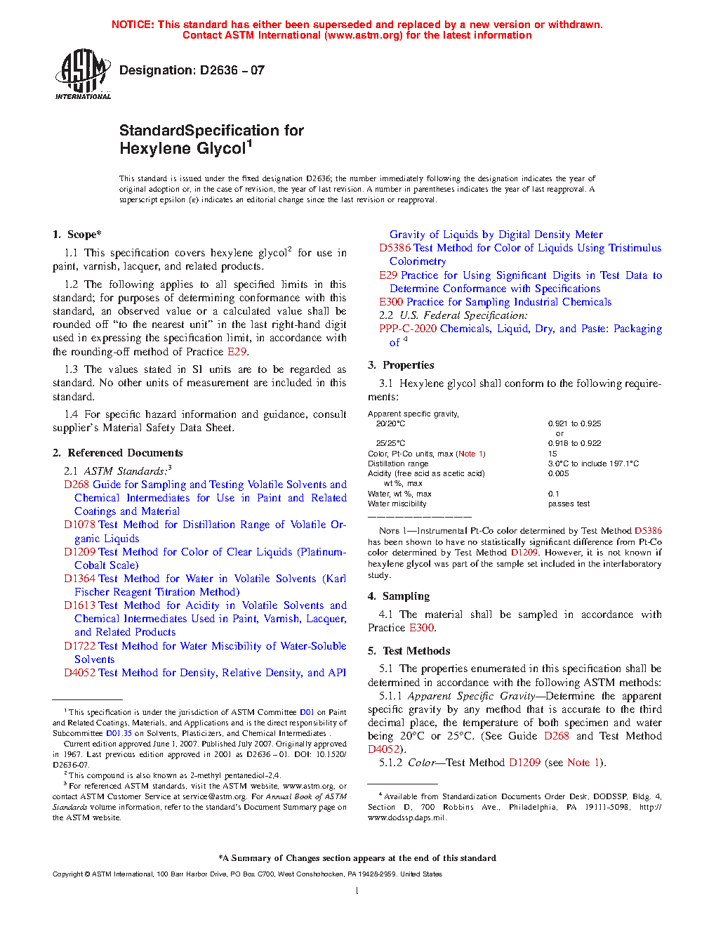 1.1 This specification covers hexylene glycol2 for use in paint, varnish, lacquer, and related products.